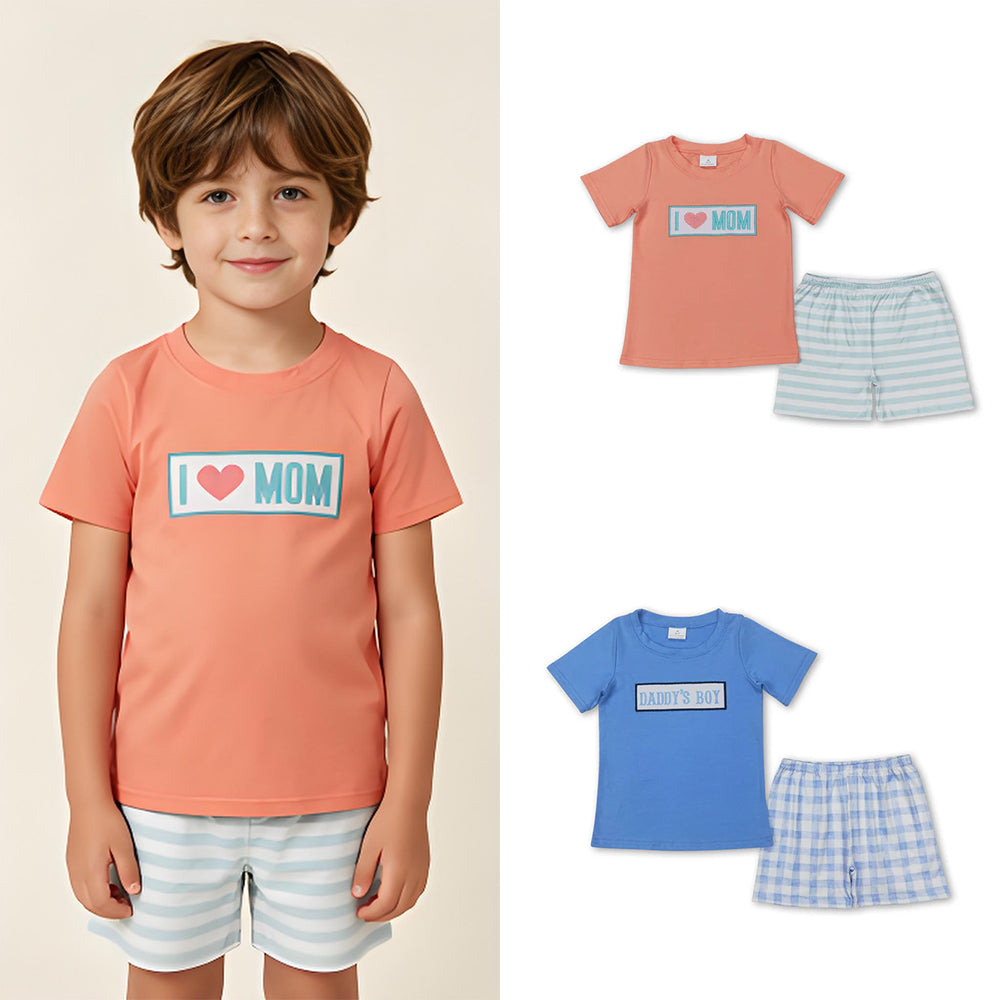 RTS Sibling Short sleeves stripe tools embroidery top shorts boys outfits and romper