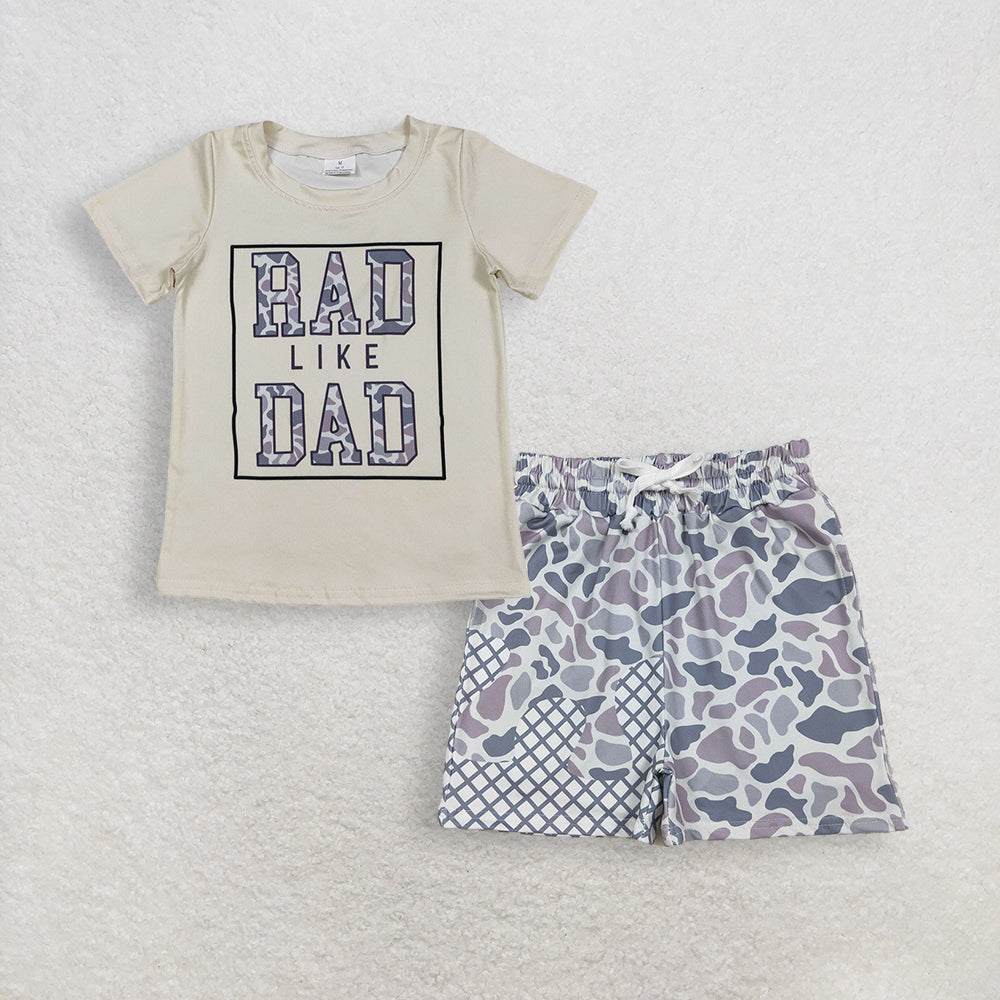 3.21 RTS NO MOQ (In stock)BSSO1899 Fashion Clothing For Baby Boys Short Sleeve Dark Green Ducks Pocket Top Shorts Hunting Clothes Set