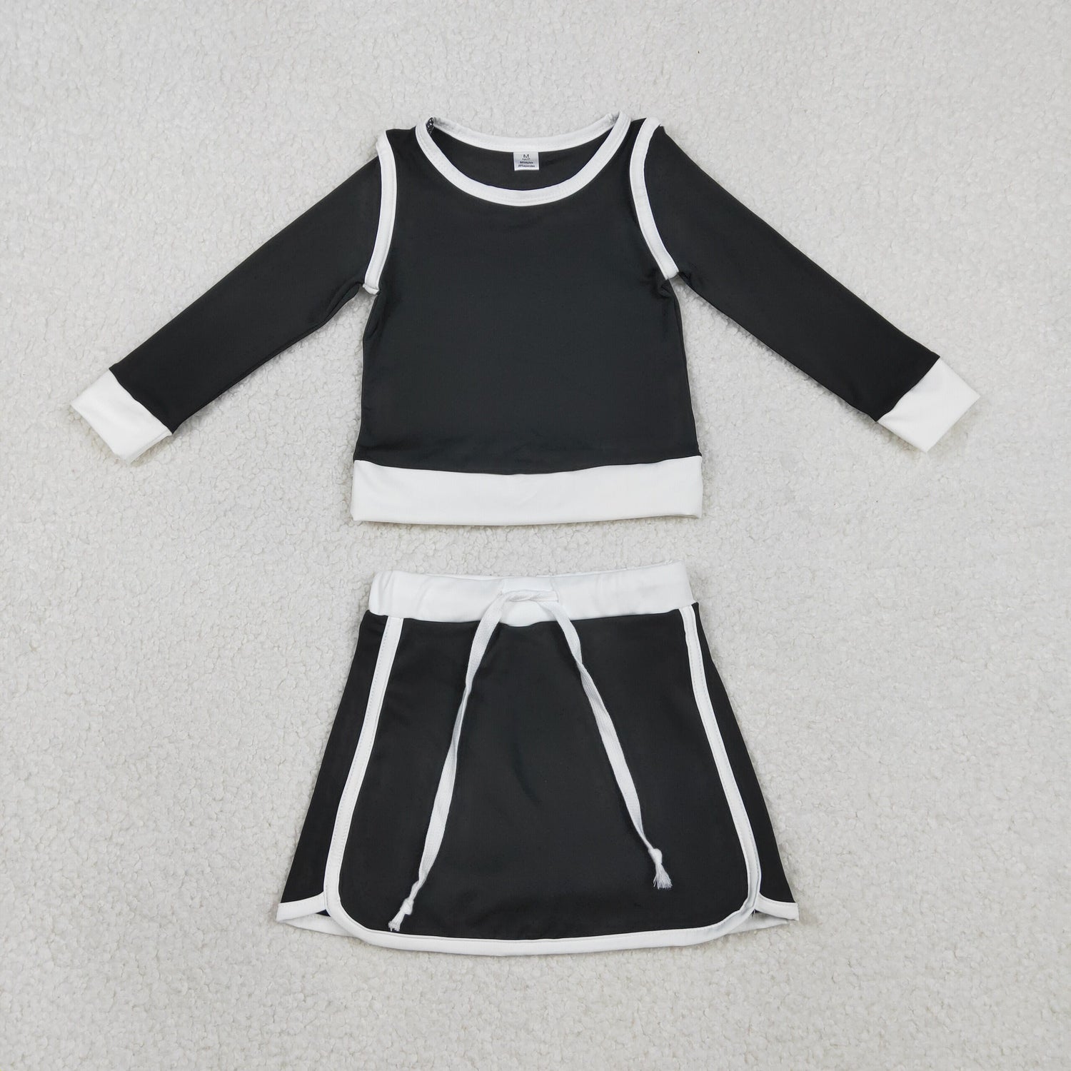 2.7 RTS NO MOQ (In stock)GLD1481 Baby Girls Black Long Sleeve Top Skirts Shorts Yoga Active Clothes Sets