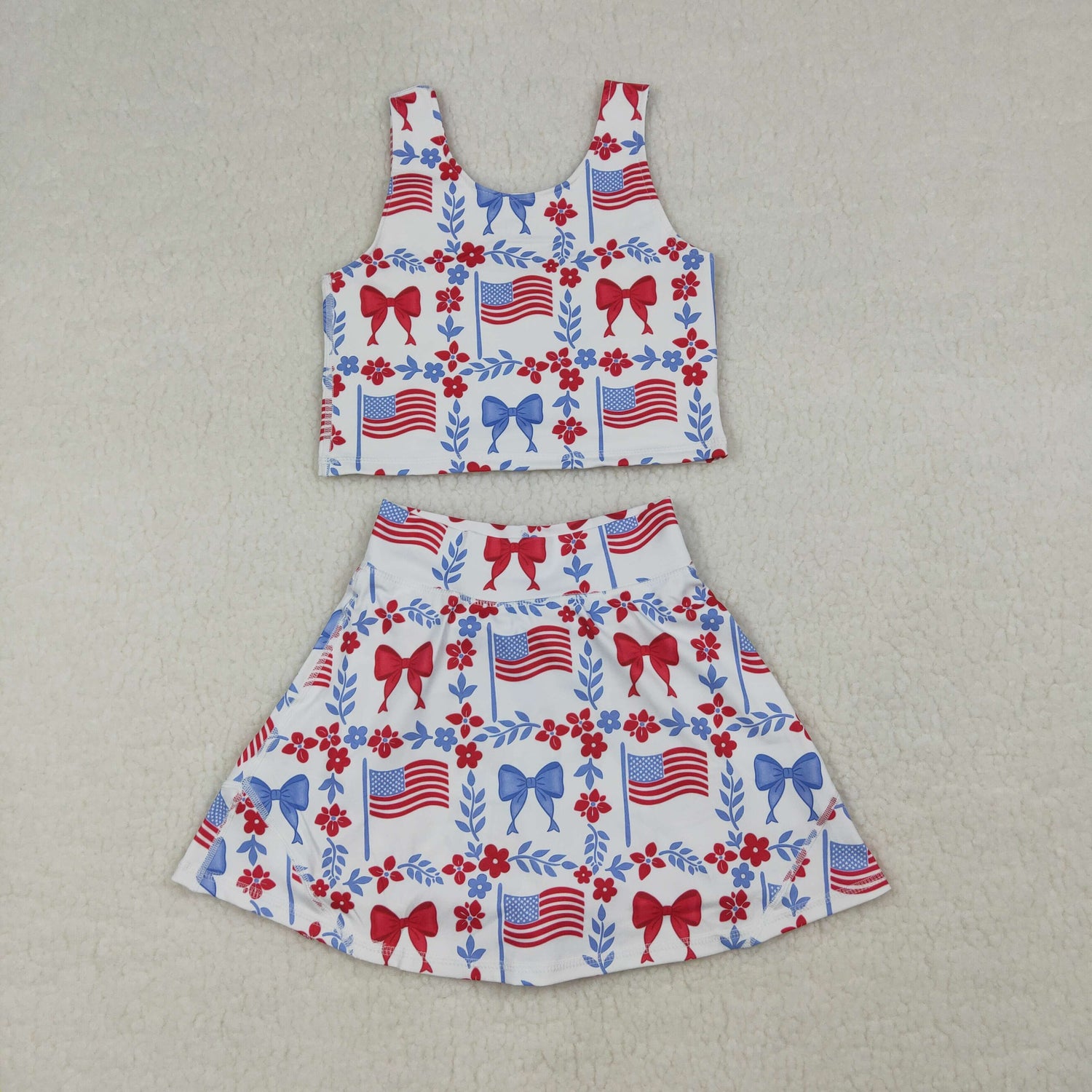 3.24 RTS NO MOQ (In stock)GSD3499 Kids Clothing for Baby Girls Sleeveless Flower Flags Vests Skirt Short 4th of July Yoga Active Clothes Sets