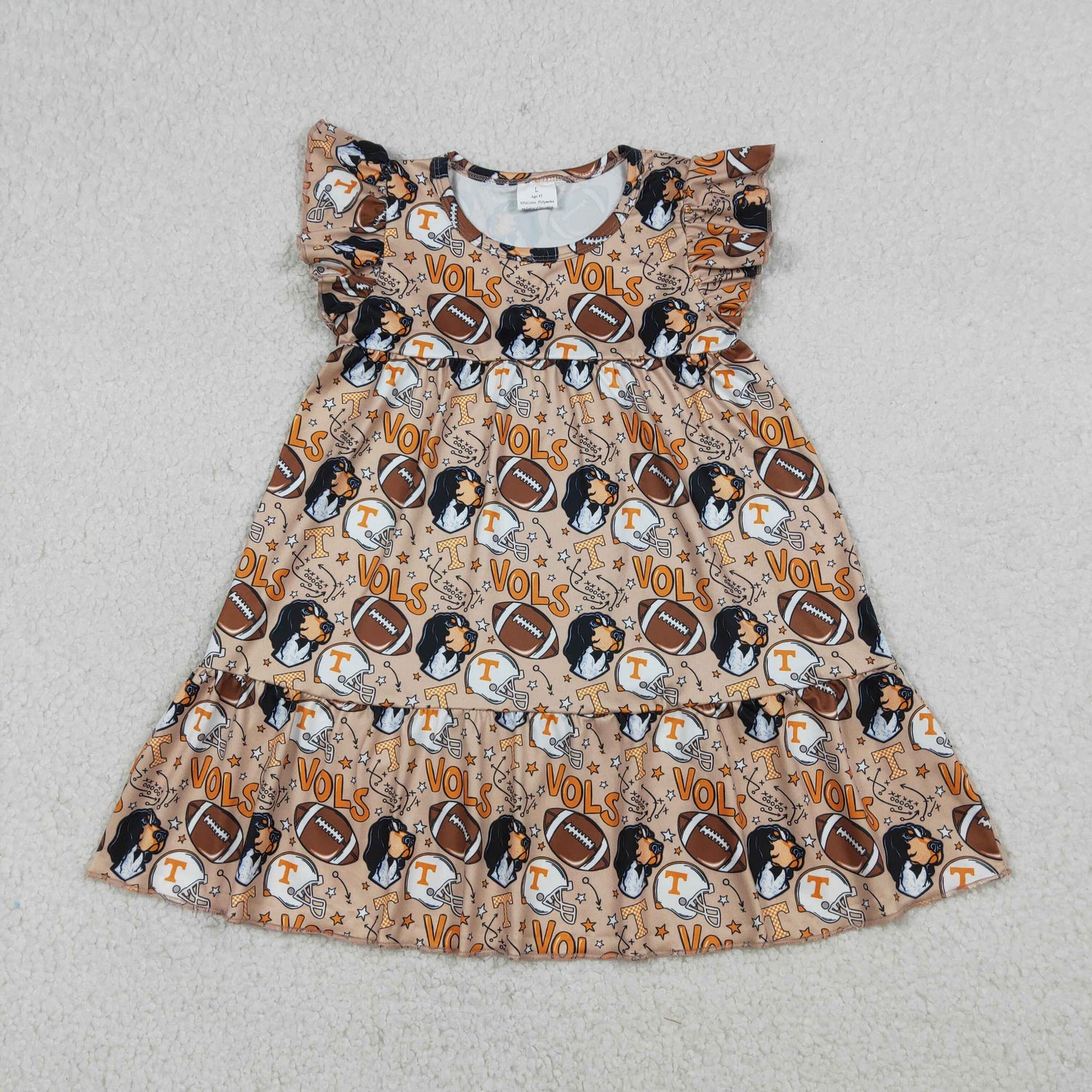 3.24 RTS NO MOQ (In stock)GSD3703 Kids Fashion Clothes Baby Girls Summer Footballs Team Patchwork Knee Length Dresses