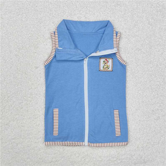 BT0452 Baby Children Boys Blue Dog Hooded Short Sleeve Shirts Tops
