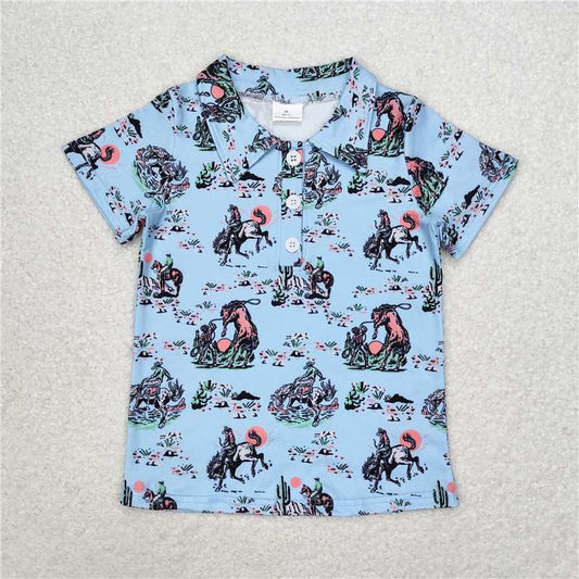 BT0175 Baby Boys Cow Western Short Sleeve Buttons Shirts Tops