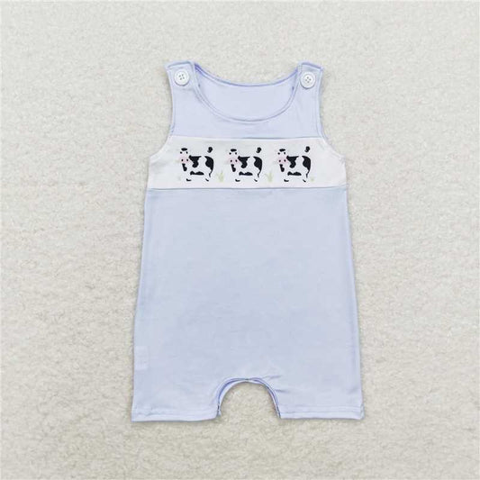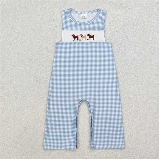SR1080 RTS NO MOQ Baby Boys Summer Rompers Embroidery Baby Infant Boys Blue Stripes Dog Flag Sleeveless Summer Rompers