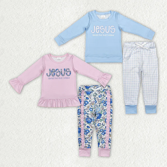 GLP1836Pink bow tunic floral ruffle pants girls clothing set