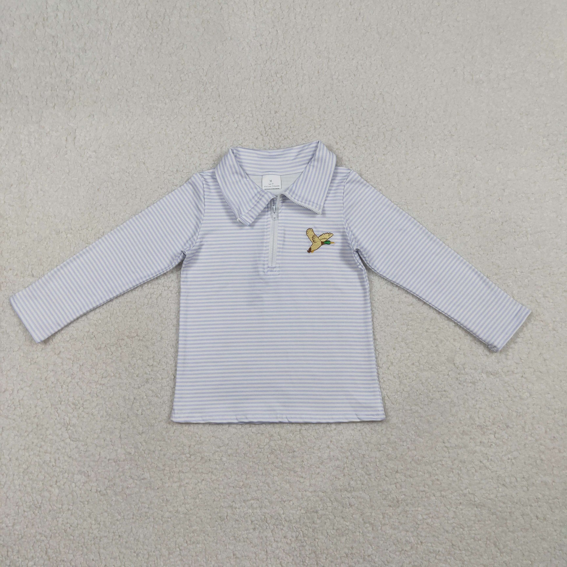 1.12 RTS NO MOQ (In stock)BT1638 Embroidery Ducks Baby Boys Grey Stripe Hunting Zip Pullovers Top