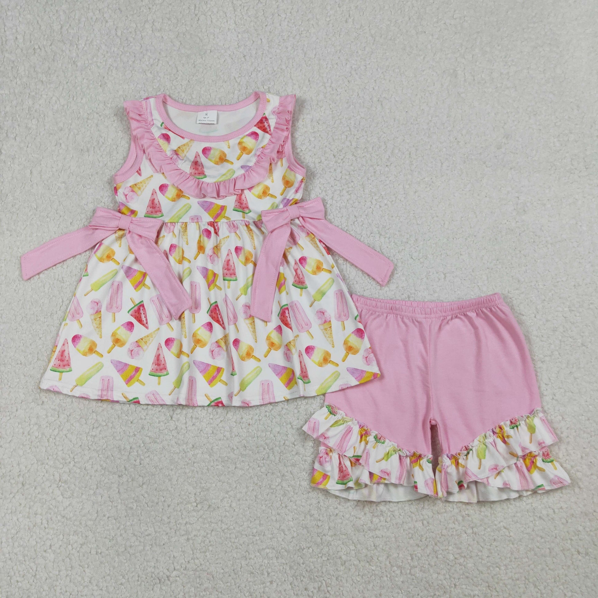1.14 RTS NO MOQ (In stock)GSSO3067 Baby Girls Colorful Popsicle Ice Creams Collar Tunic Ruffle Shorts Clothes Sets