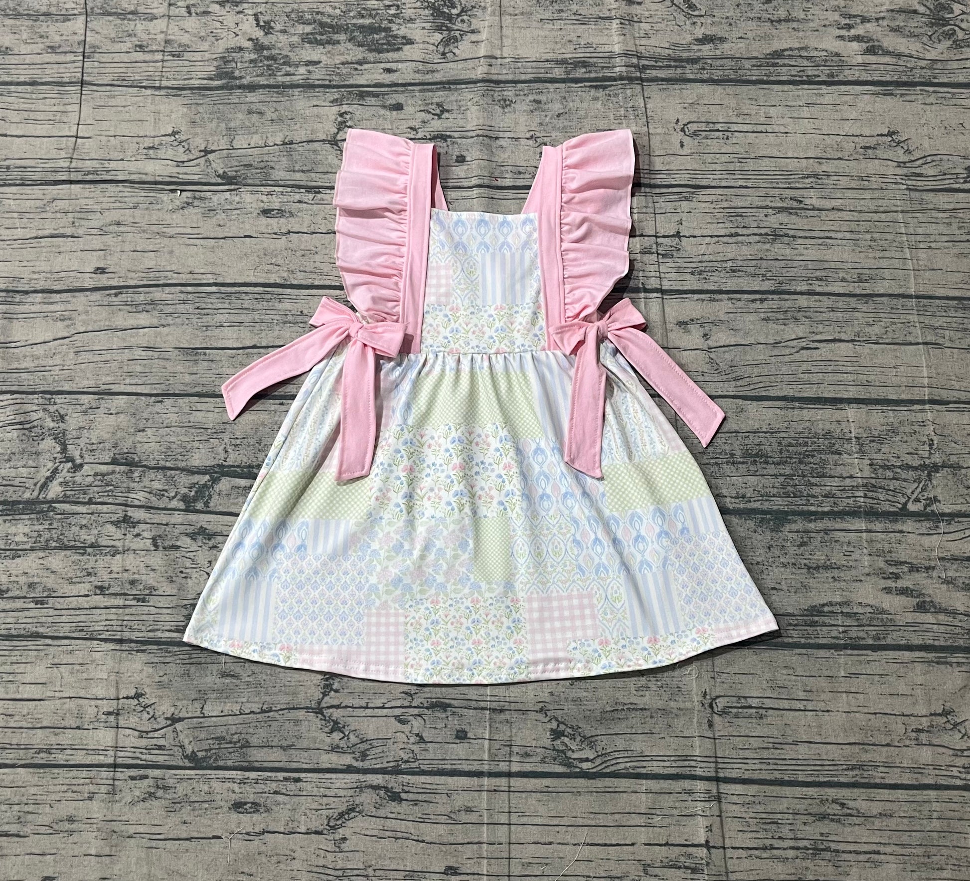 1.5 GSD3249 Pre order No Moq Baby Girls Pink Flowers Checked Bows Knee Length Dresses
