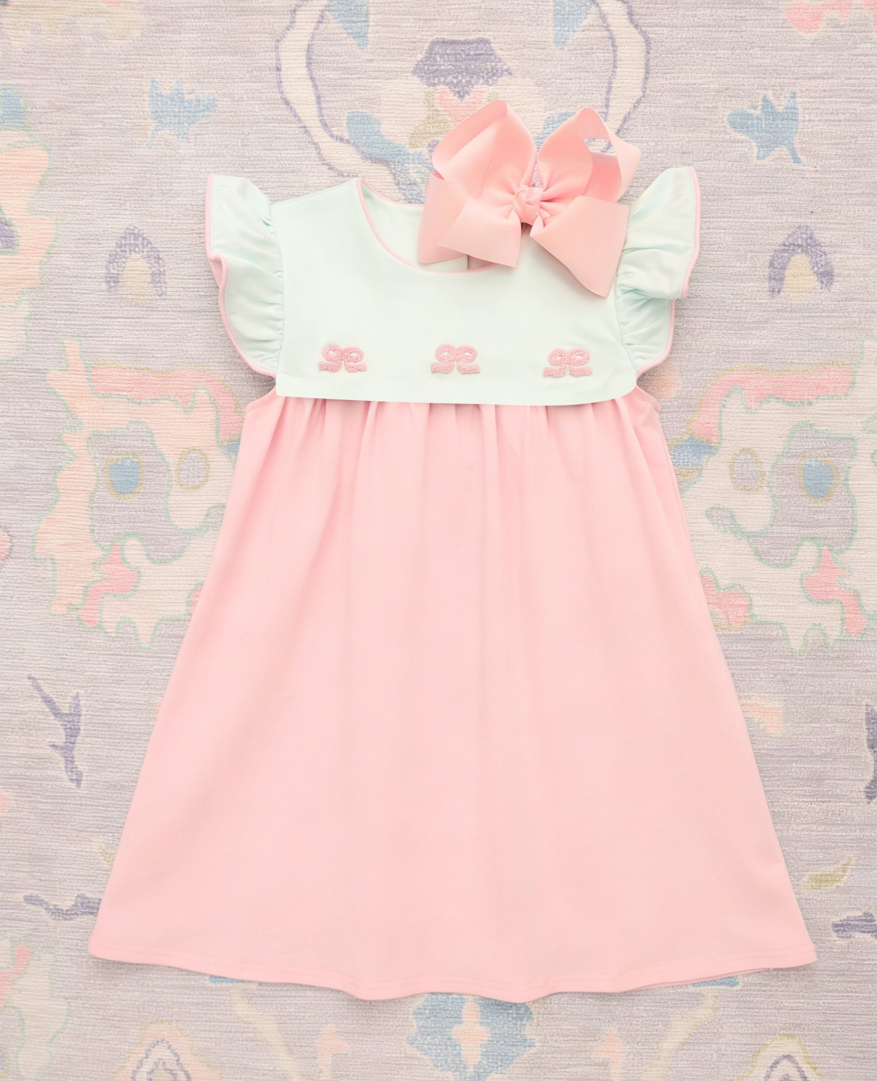 1.5 GSD3530 Pre order No Moq Baby Girls Flutter Sleeve Pink Bows Knee Length Dresses
