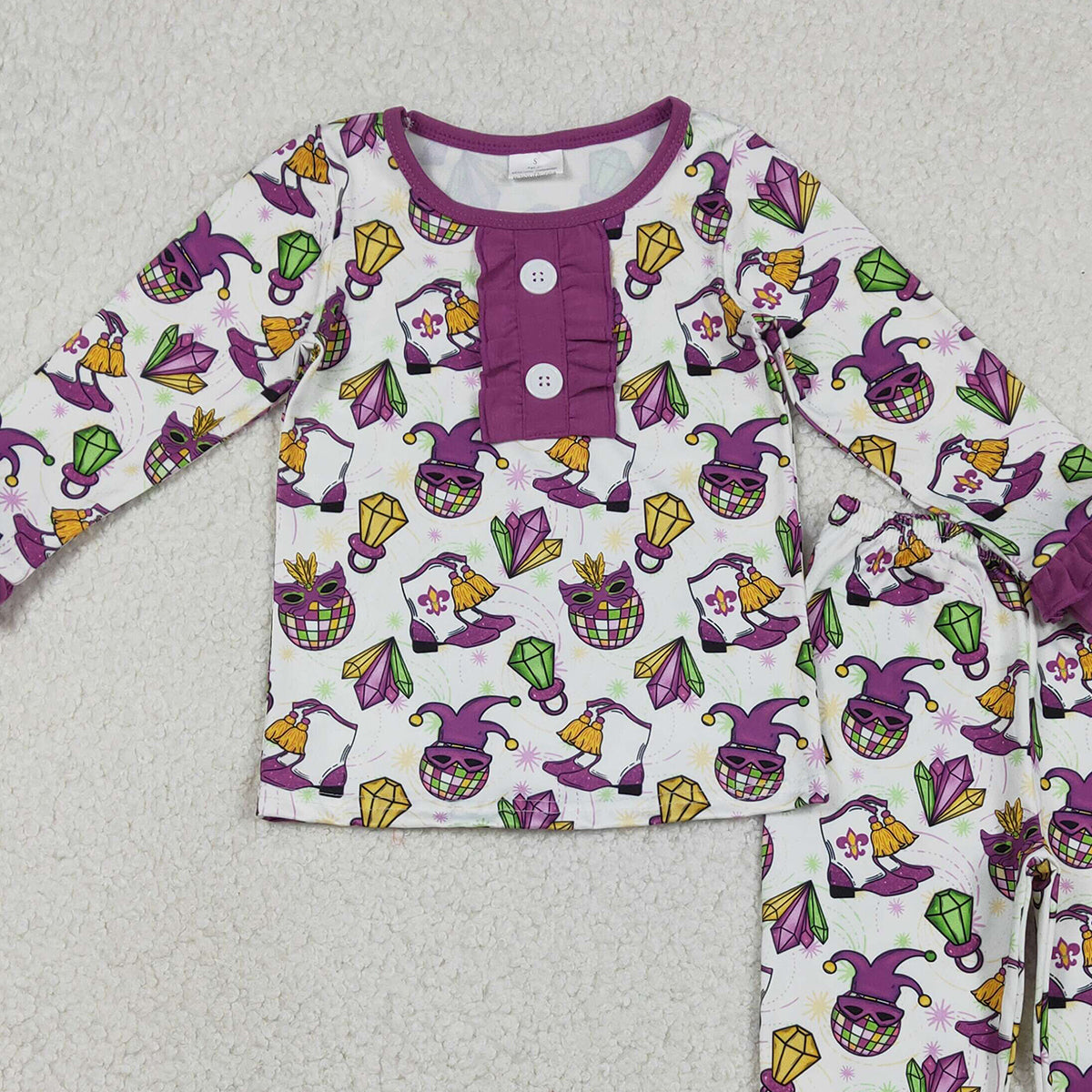 1.6 RTS NO MOQ (In stock)GLP2113 Baby Girls Mardigras Anchors Boots Button Top Pants Pajamas Sets