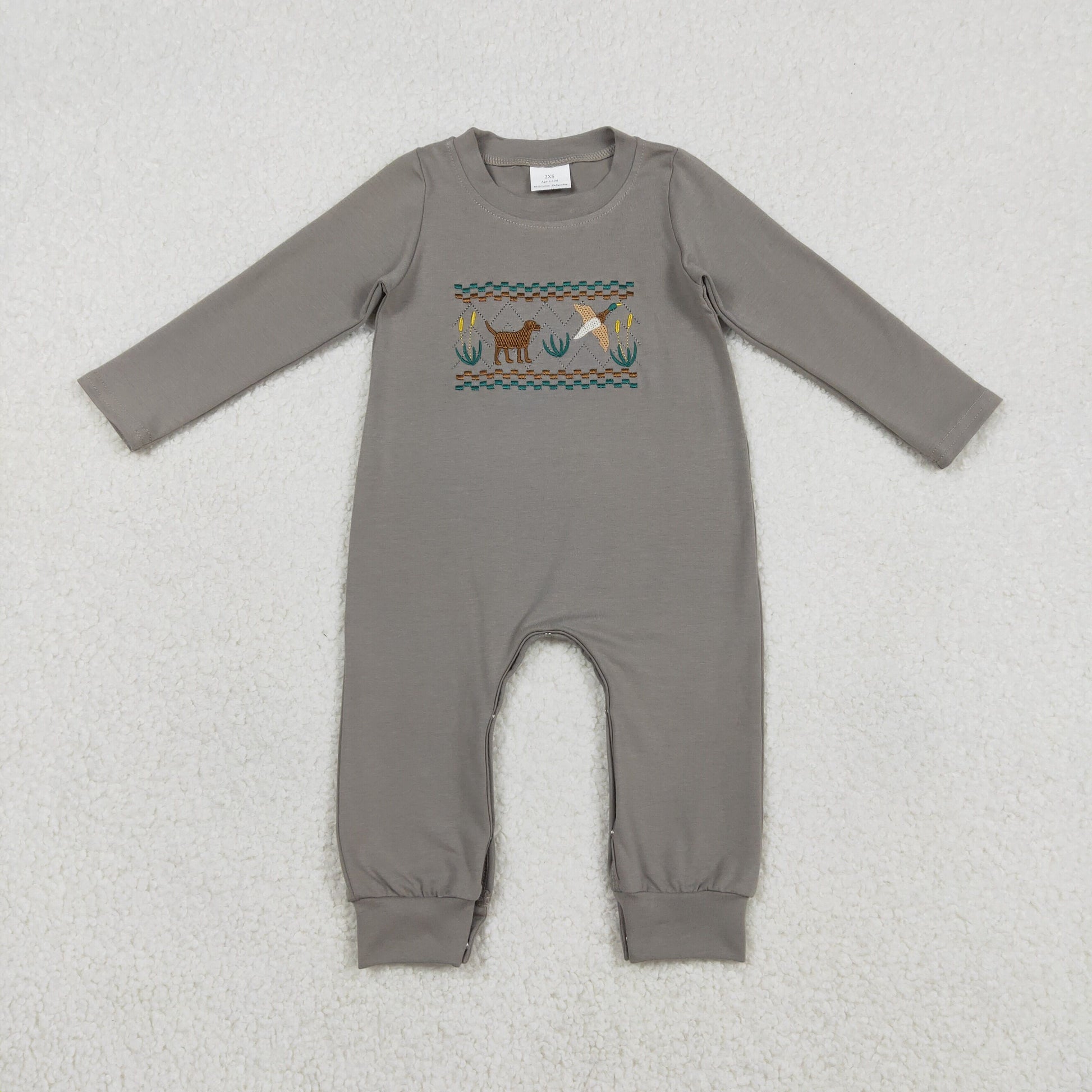 1.6 RTS NO MOQ (In stock)LR2909 Baby Boys Winter Rompers Embroidery Dog Ducks Baby Boys Hunting Rompers