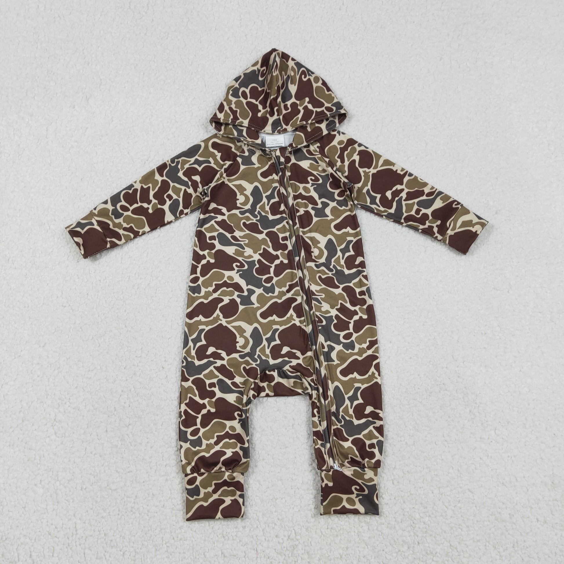 1.7 RTS NO MOQ (In stock)LR2826 Baby Boys Winter Rompers Baby Boys Southern Dark Brown Camo Hoodie Two Way Zip Convertible Rompers