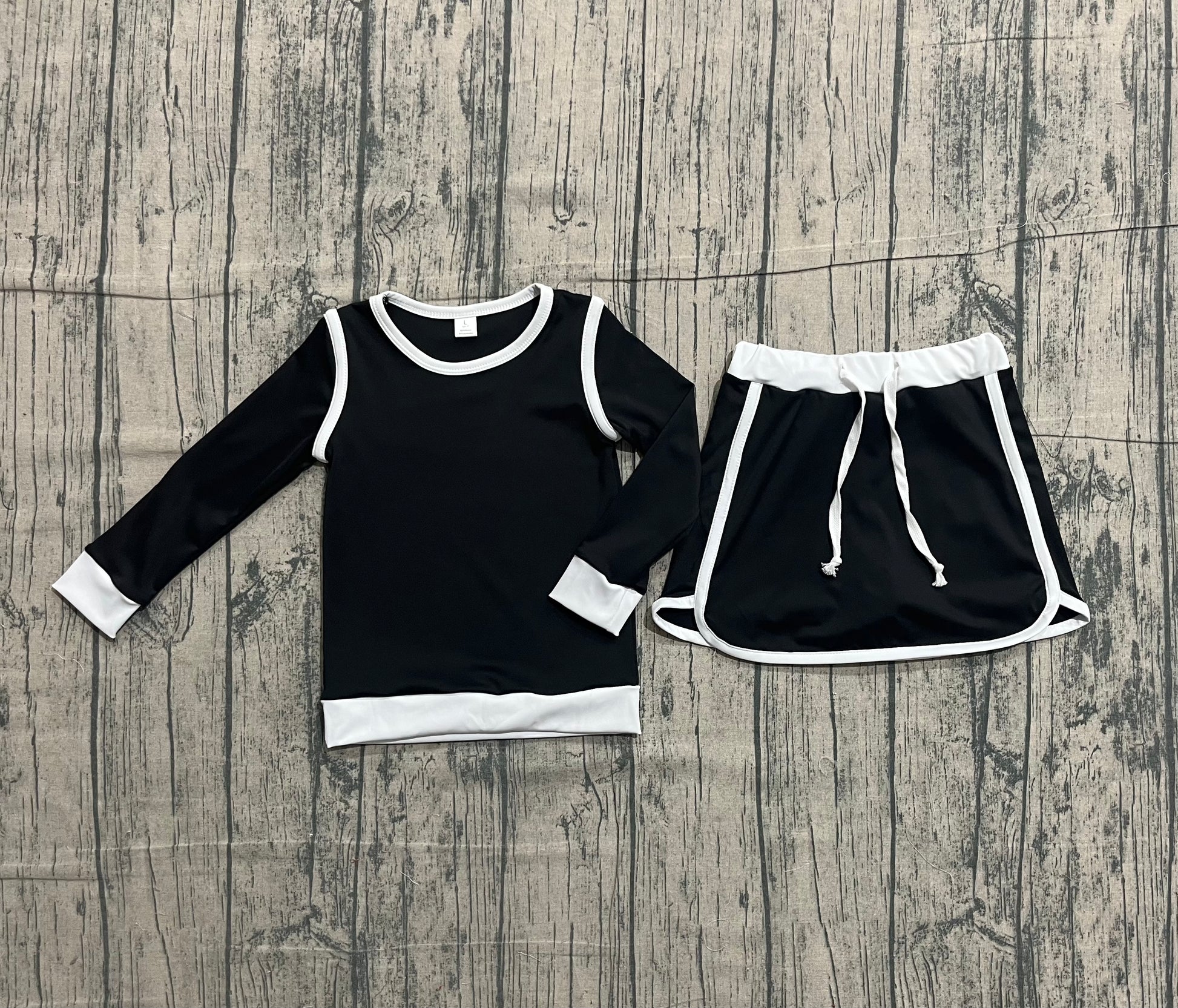 1.8 GLD1481 Sample No Moq Yoga fabric Baby Girls Black Long Sleeve Top Skirts Shorts Yoga Clothes Sets