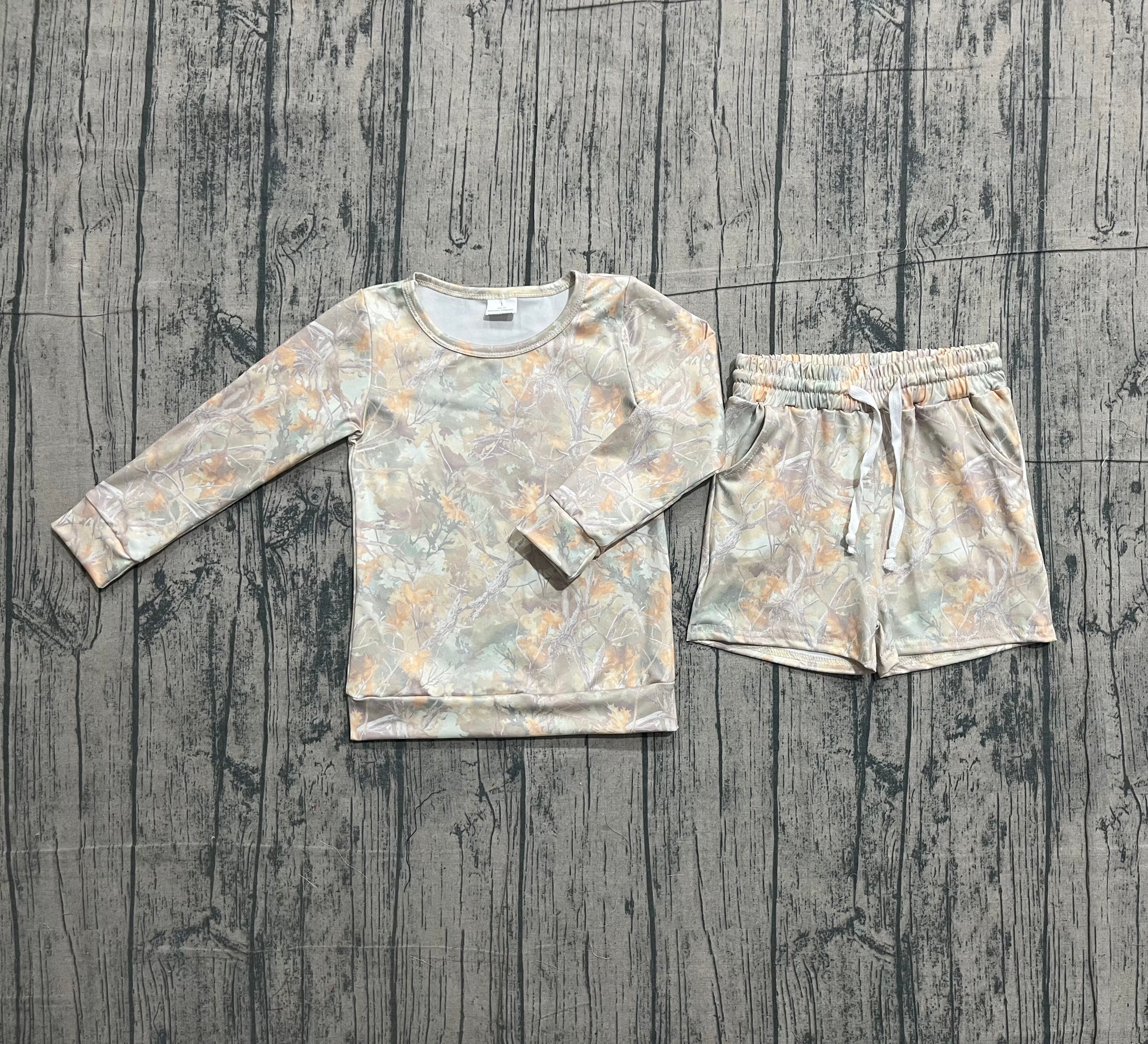 1.8 GLS0058 Smple No Moq Baby Girls Leaves Camo Long Sleeve Top Pockets Shorts Southern Clothes Sets
