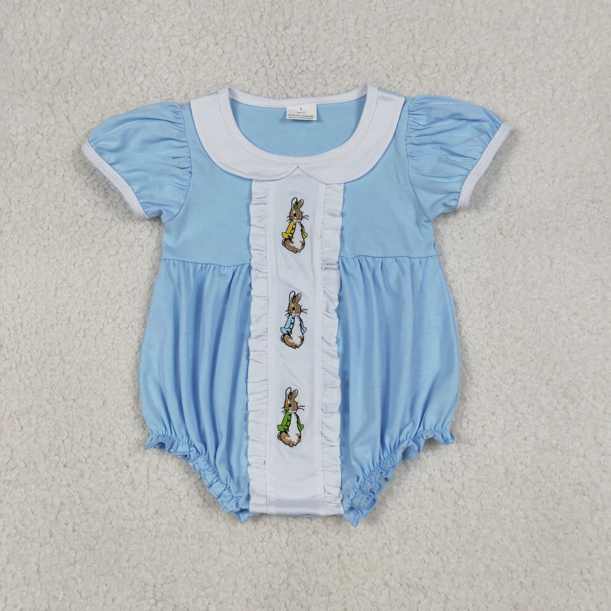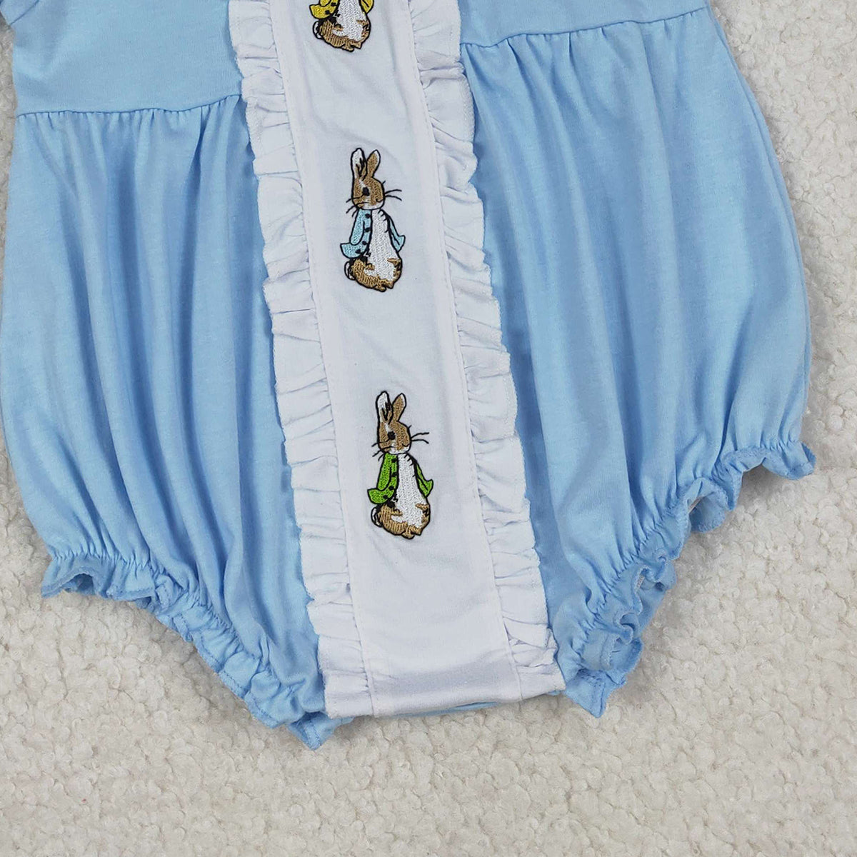 1.8 RTS NO MOQ (In stock)SR3382 Embroidery Rabbits Baby Girls Easter Collar Ruffle Rompers