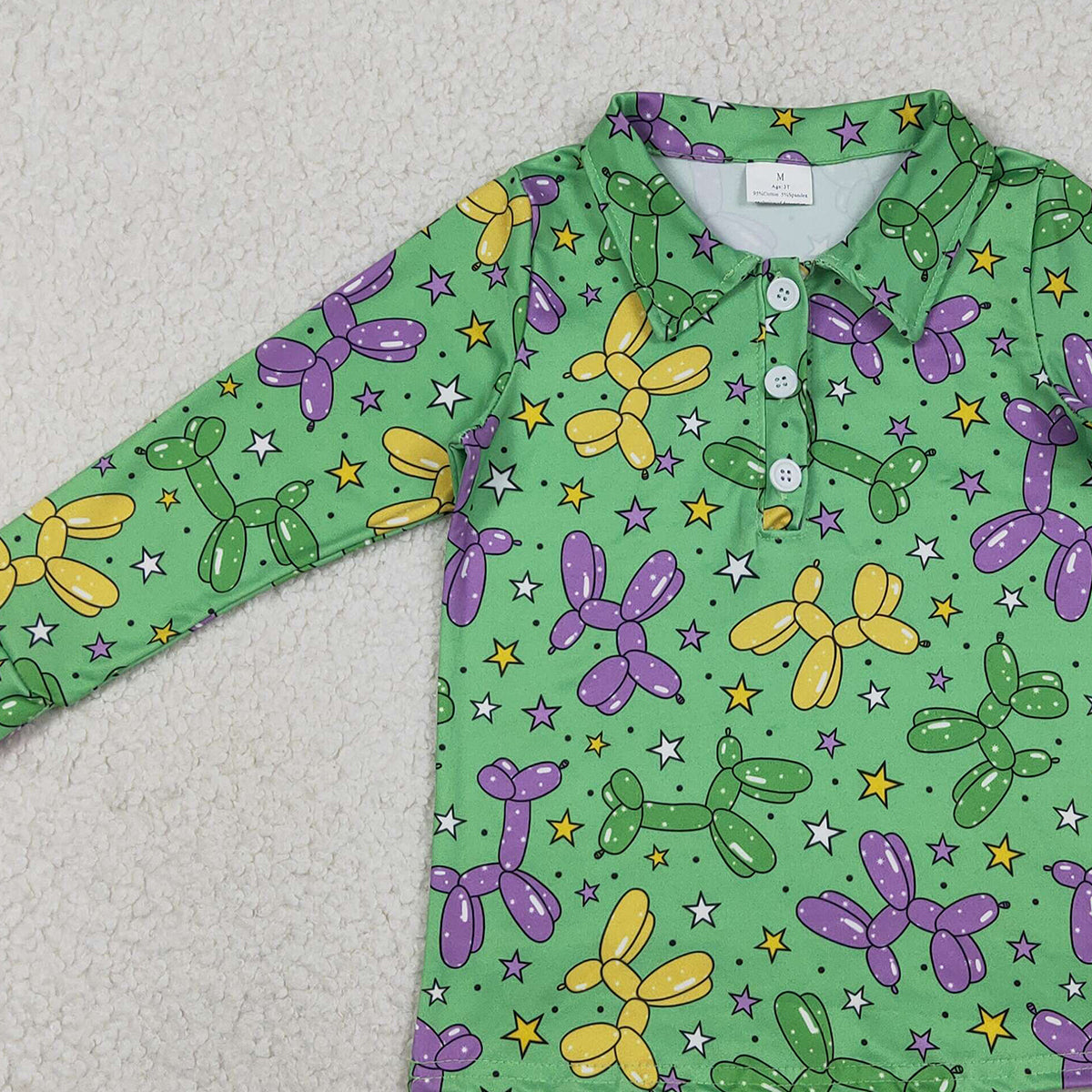 1.9 RTS NO MOQ (In stock)BT1389 Baby Boys Long Sleeve Stars Dogs Mardigras Polo Shirts Top