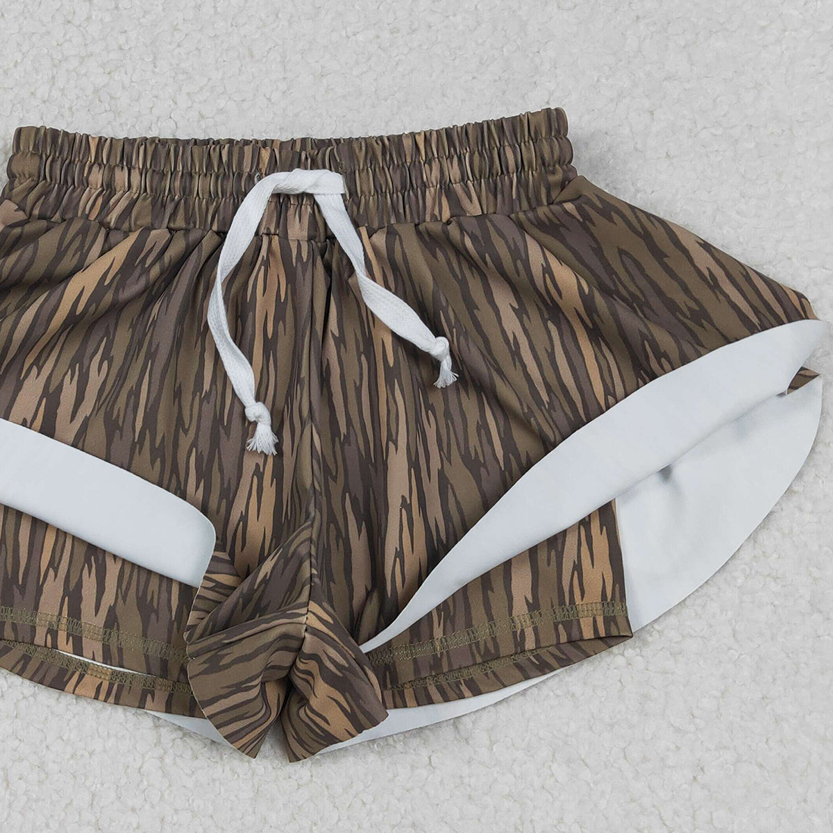 1.9 RTS NO MOQ (In stock)SS0771 Baby Girls Summer Shorts Baby Girls Southern Olive Camo Yoga Active Ruffle Shorts Bottom