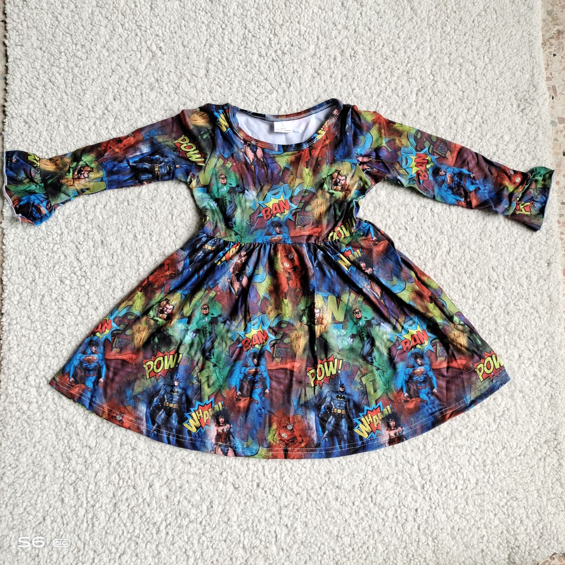 10.1 RTS NO MOQ(In stock)G2-16-3,.; Baby Girls Winter Dress Green letter monster retro long sleeve dress