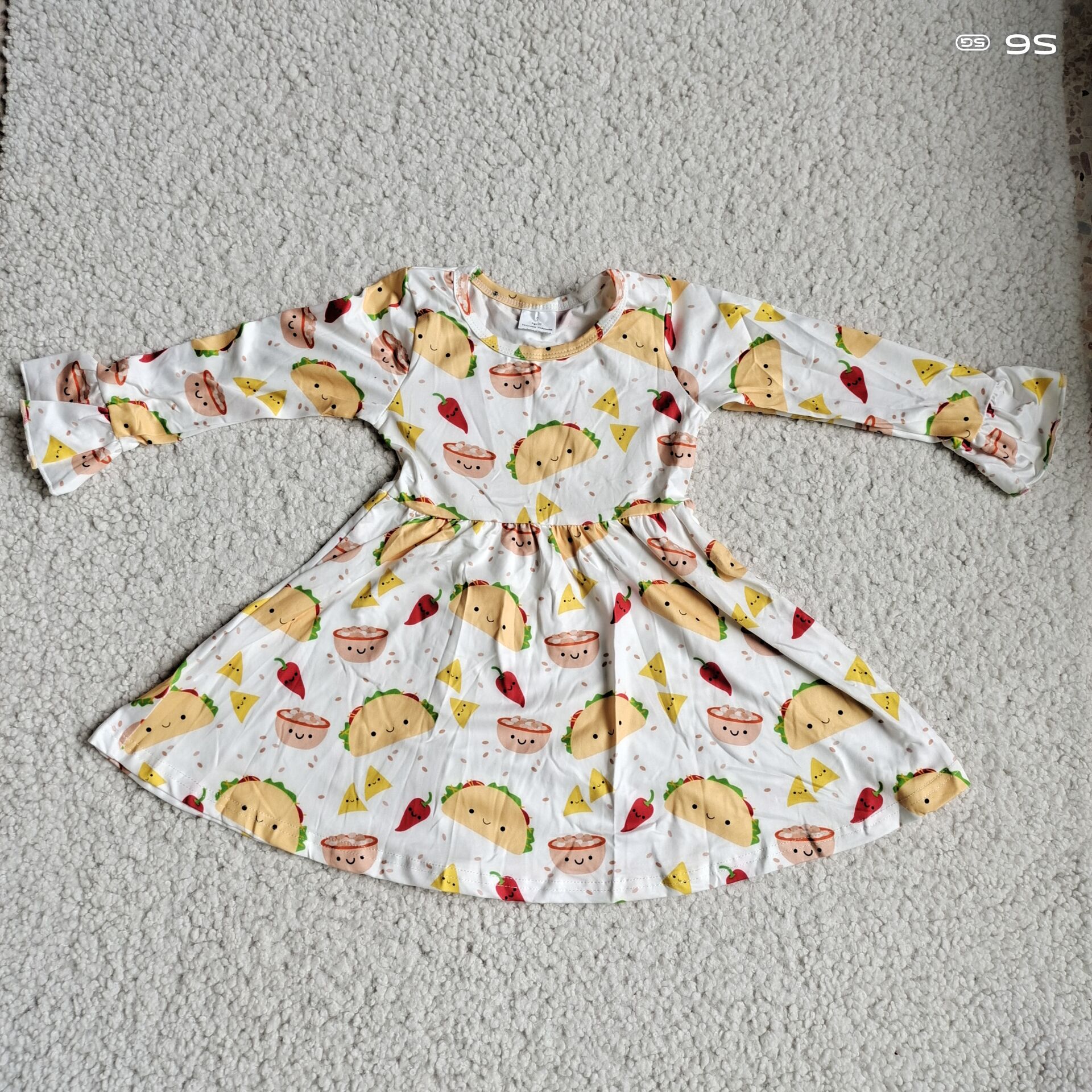 10.1 RTS NO MOQ(In stock)G2-20-5*.Baby Girls Winter Dress Dumpling and Chili White Long Sleeve Dress