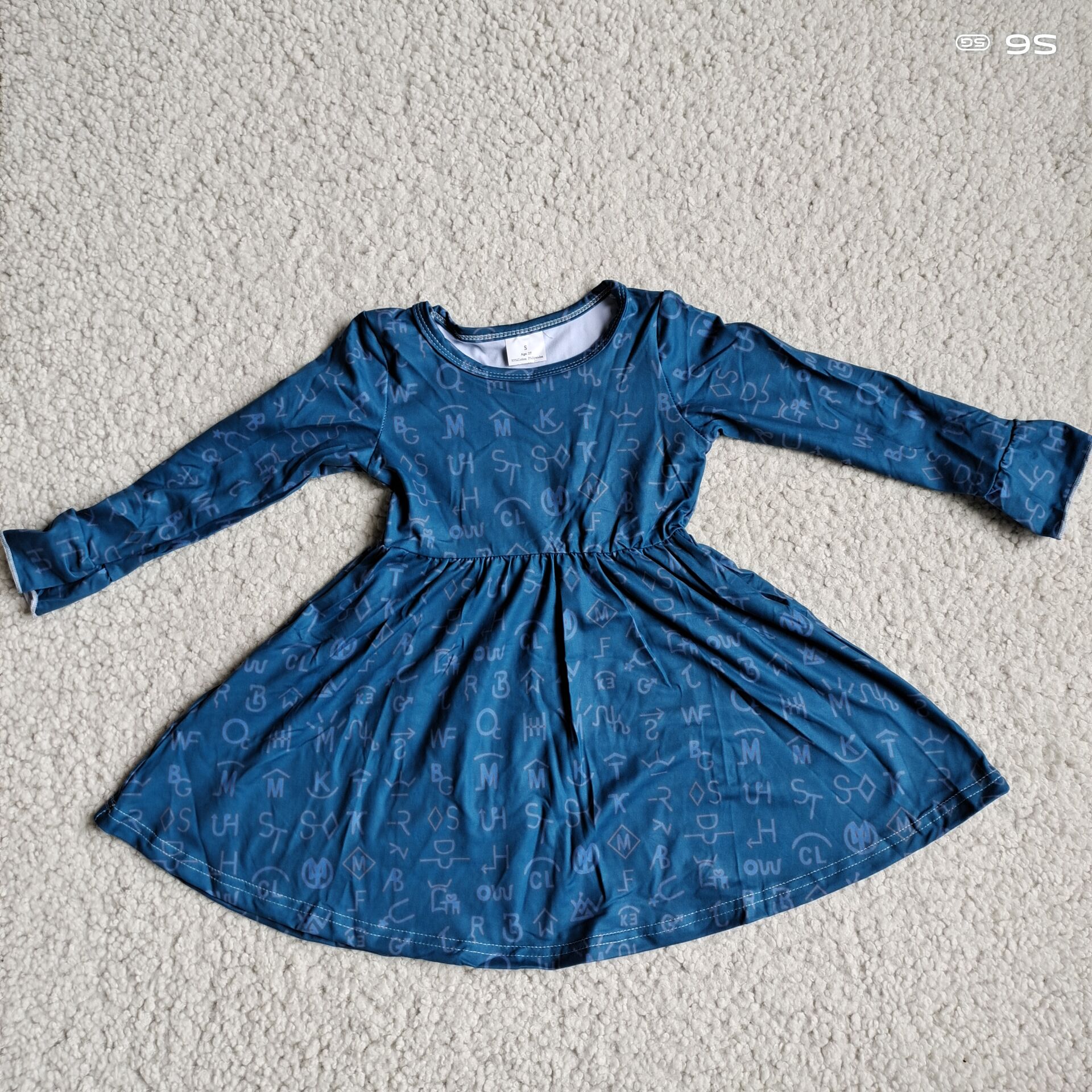 10.1 RTS NO MOQ(In stock)G3-4-2*- Baby Girls Winter Dress Purple letter brown and green long-sleeved dress