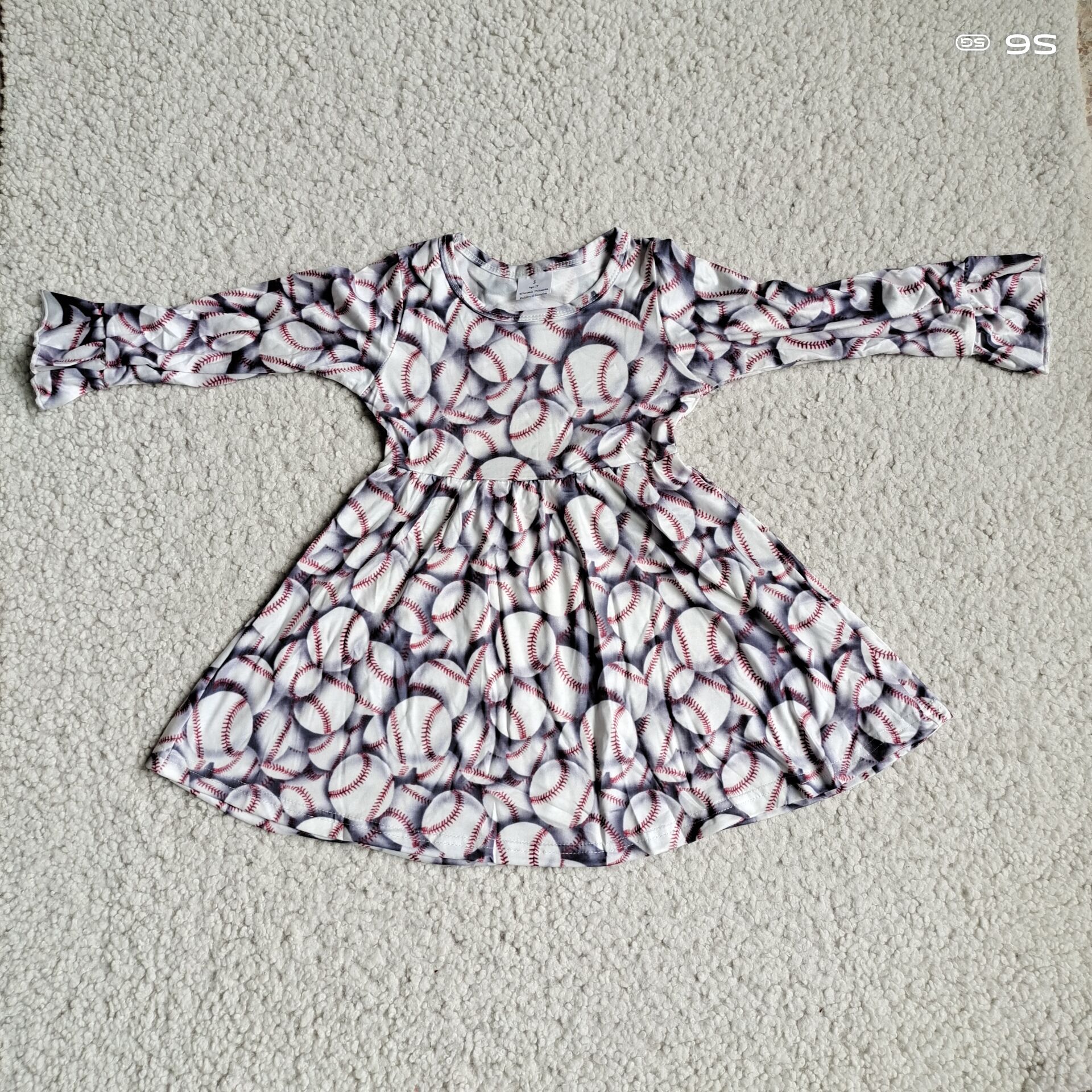 10.1 RTS NO MOQ(In stock)G3-4-6, Baby Girls Winter Dress Baseball print long-sleeved dress