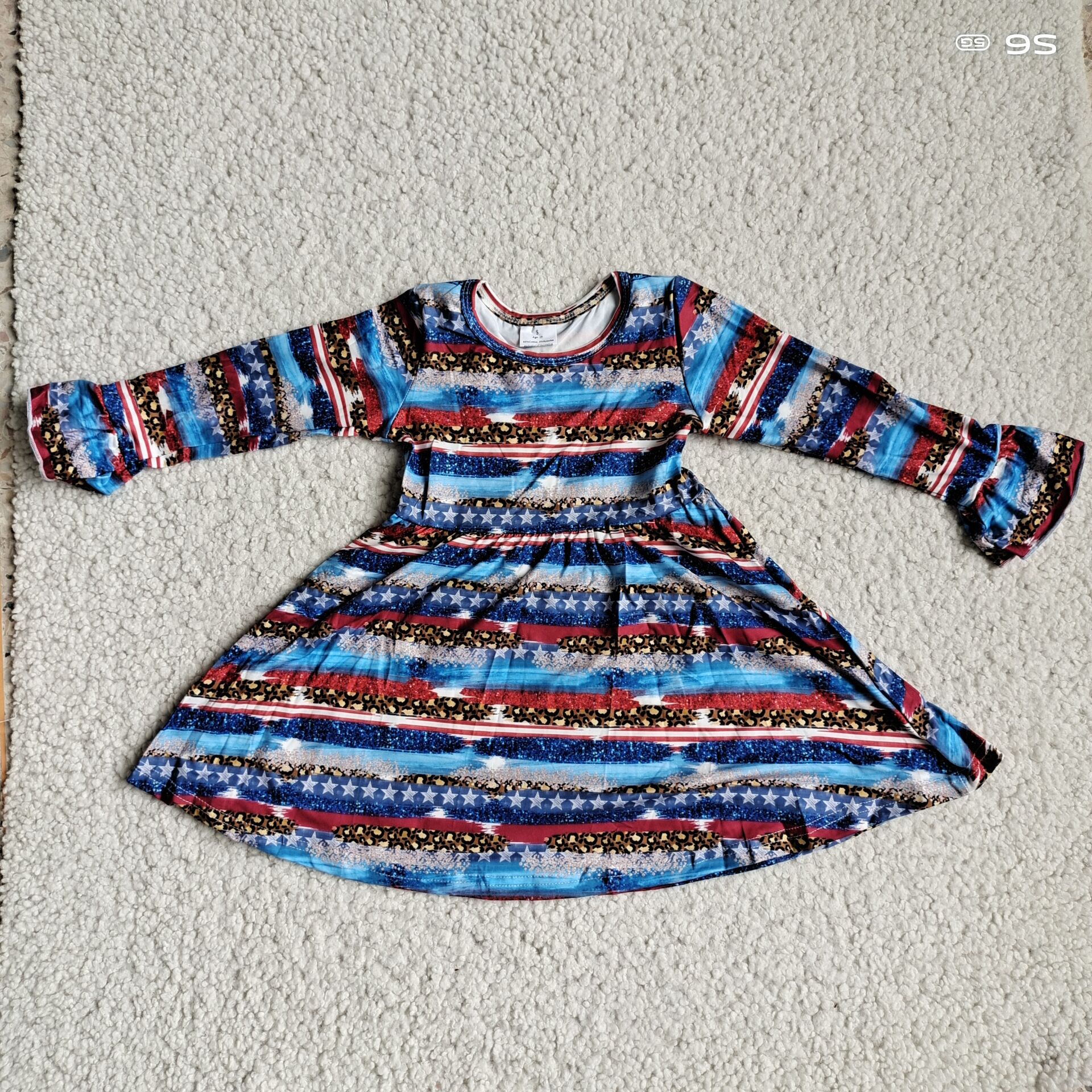 10.1 RTS NO MOQ(In stock)G3-4-6' Baby Girls Winter Dress Blue and red striped leopard print long-sleeved dress