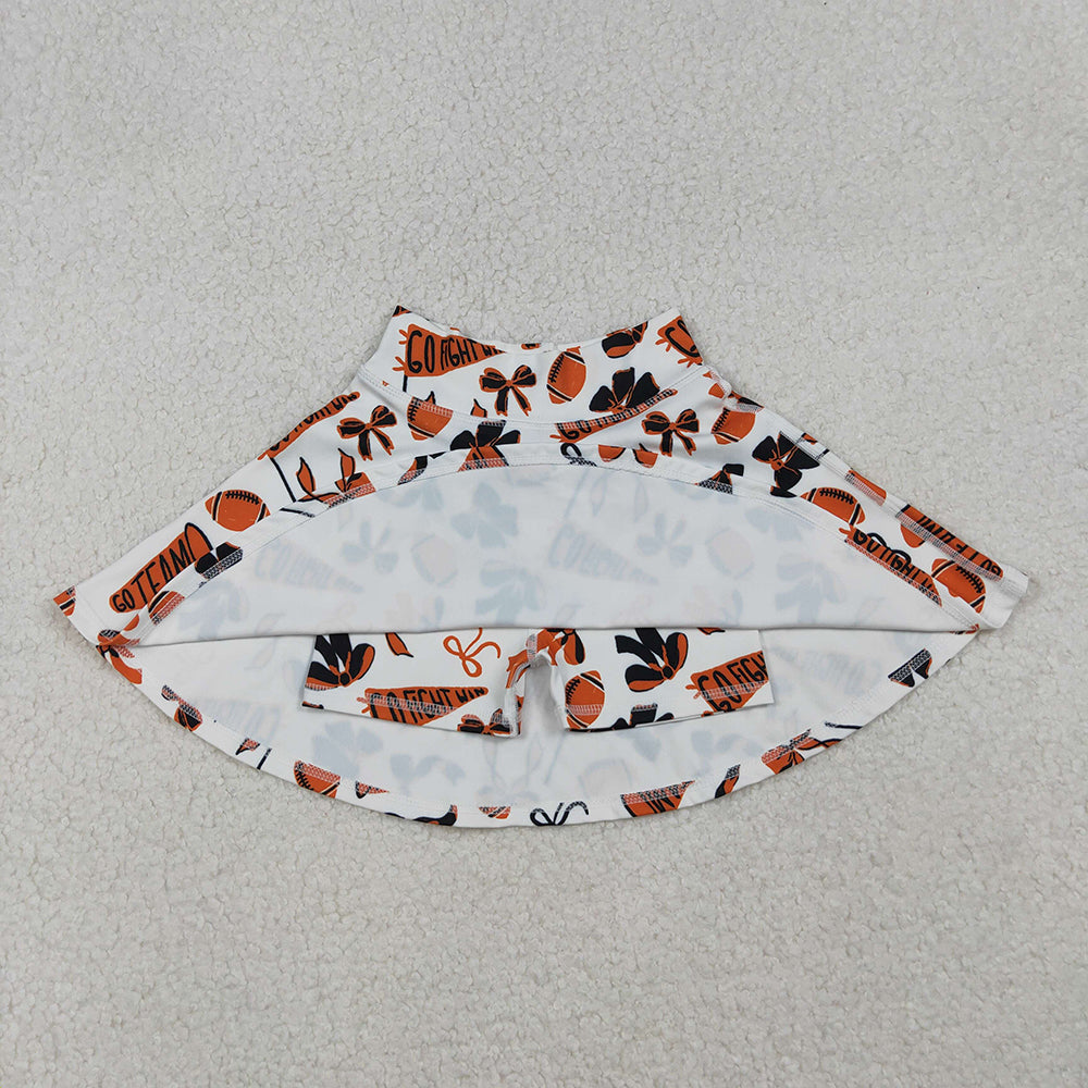 10.10 RTS NO MOQ (In stock)GLK0140 RTS NO MOQ Baby Girls Orange Black Bows Go Team Yoga Skirt Shorts Bottom
