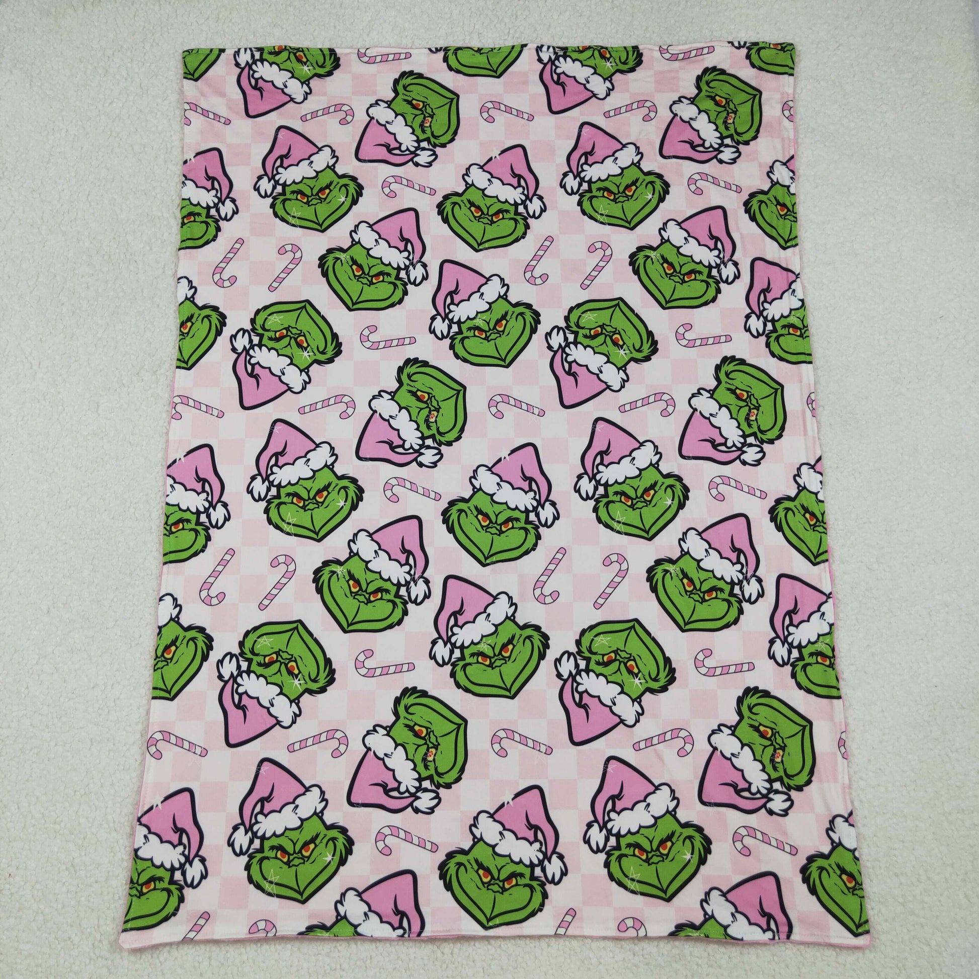 10.10 RTS NO MOQ (In stock)BL0225 Baby Kids Green Face Candy Cane Christmas Blankets