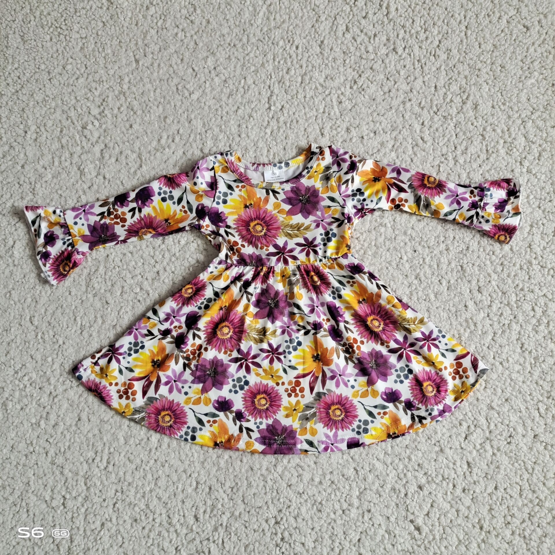 10.10 RTS NO MOQ(In stock)G2-20-2'\]* Baby Girls Winter Dress Rose purple and yellow floral long-sleeved dress