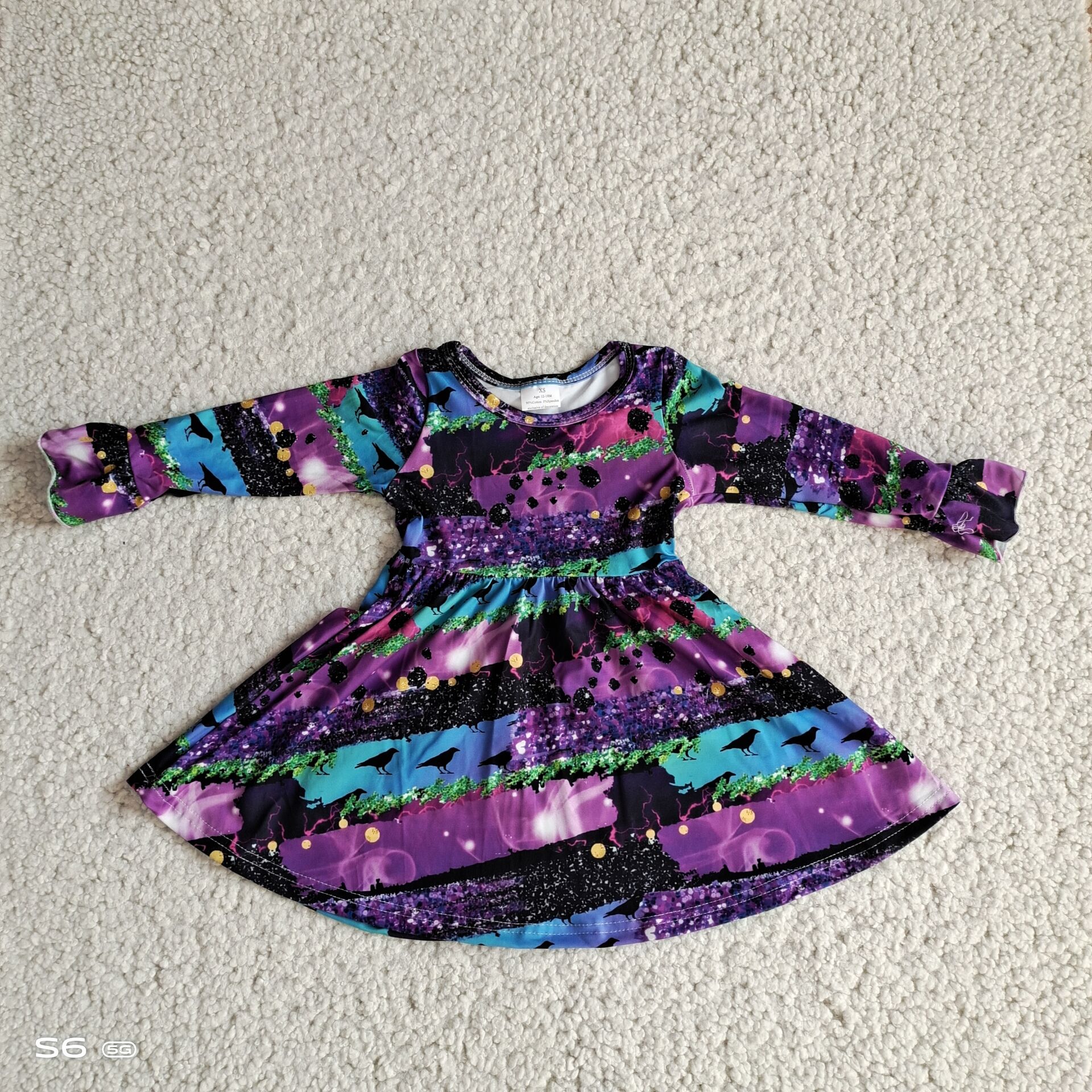 10.10 RTS NO MOQ(In stock)G2-20-9*,.. Baby Girls Winter Dress Night view moon purple green long sleeve dress