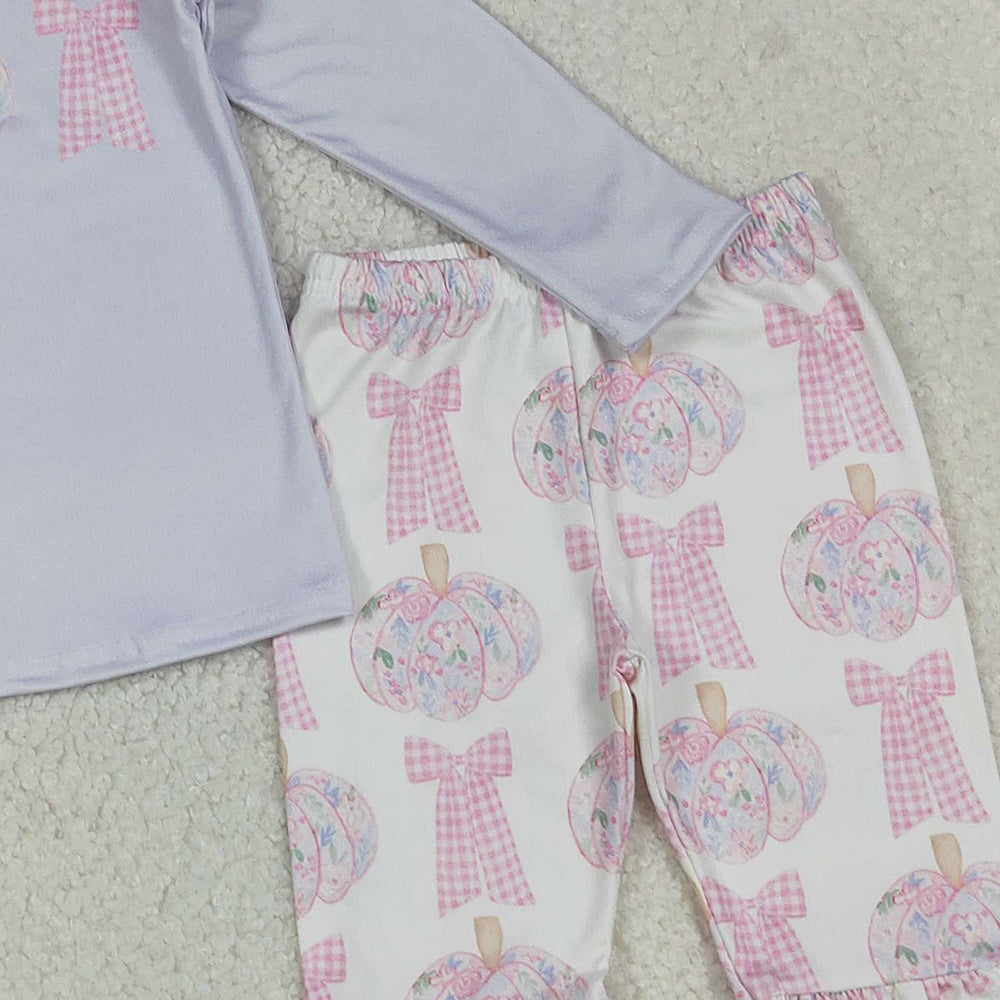 10.10 RTS NO MOQ (In stock)GLP2532 Baby Girls Winter Outfits Baby Girls Long Sleeves Bows Pumpkins Top Bell Bottom Pants Fall Clothes Sets