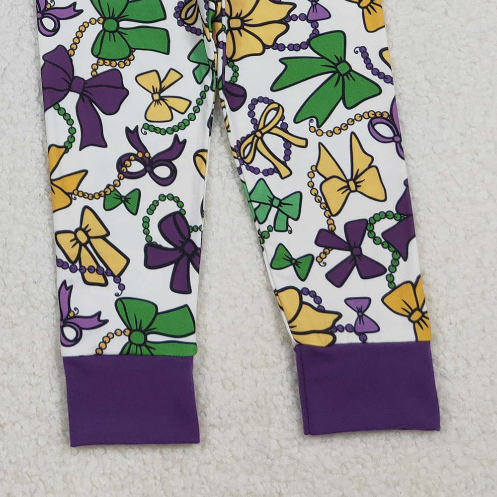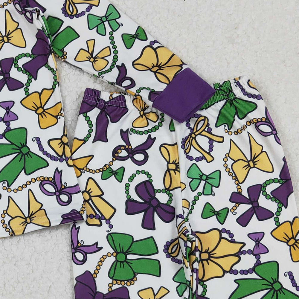 10.10 RTS NO MOQ (In stock)GLP2872 Baby Girls Winter Outfits Baby Girls Mardigras Bows Masks Top Pants Pajamas Sets