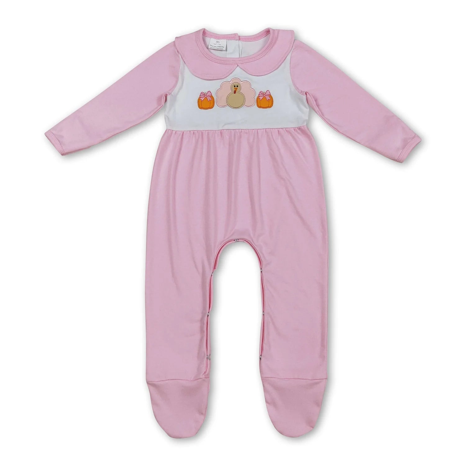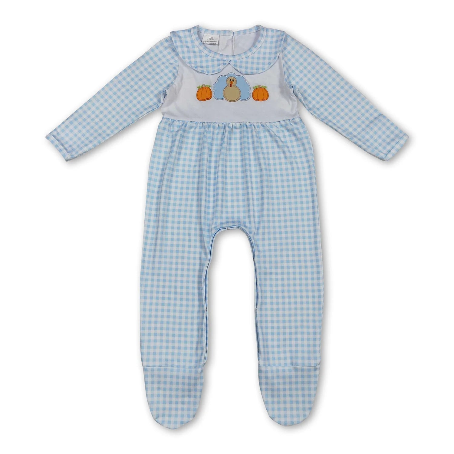 10.10 RTS Sibling Embroidery Pumpkins Turkey Baby Infant Thanksgiving Fall Footed Rompers