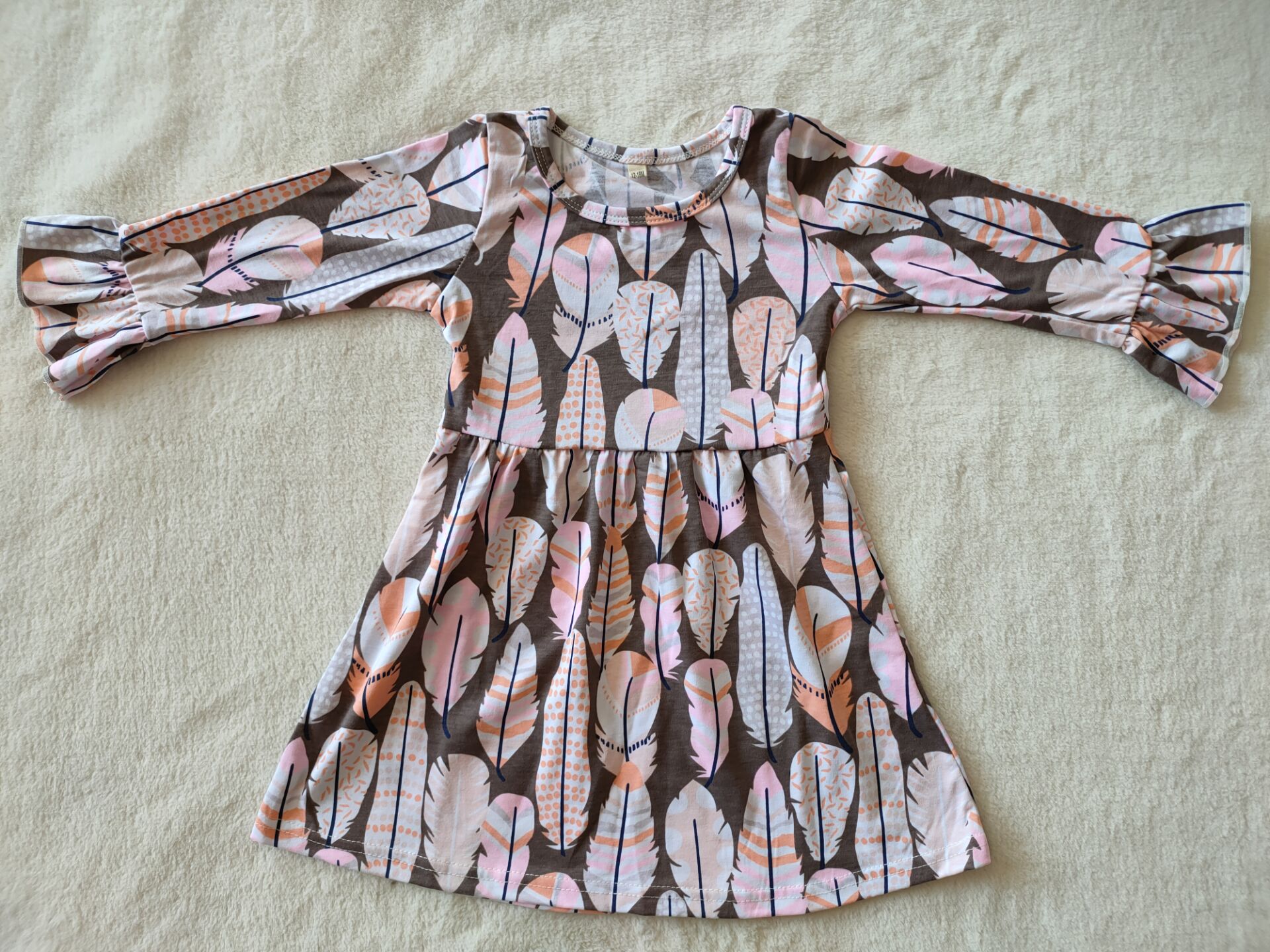 10.11 RTS NO MOQ(In stock)G3-4-4** Baby Girls Winter Dress Colorful feather long-sleeved dress