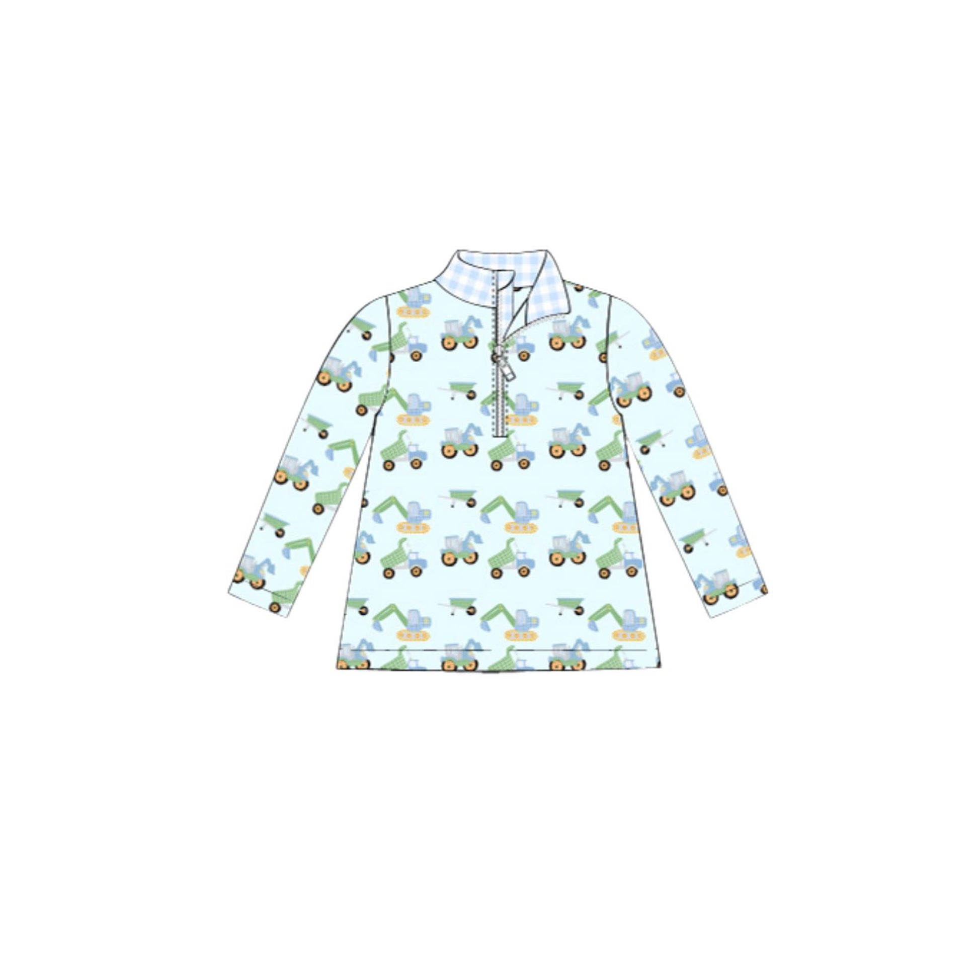 10.14 BT1408 Pre order No Moq Baby Boys Aqua Long Sleeve Excavators Tractors Zipper Pullovers Top