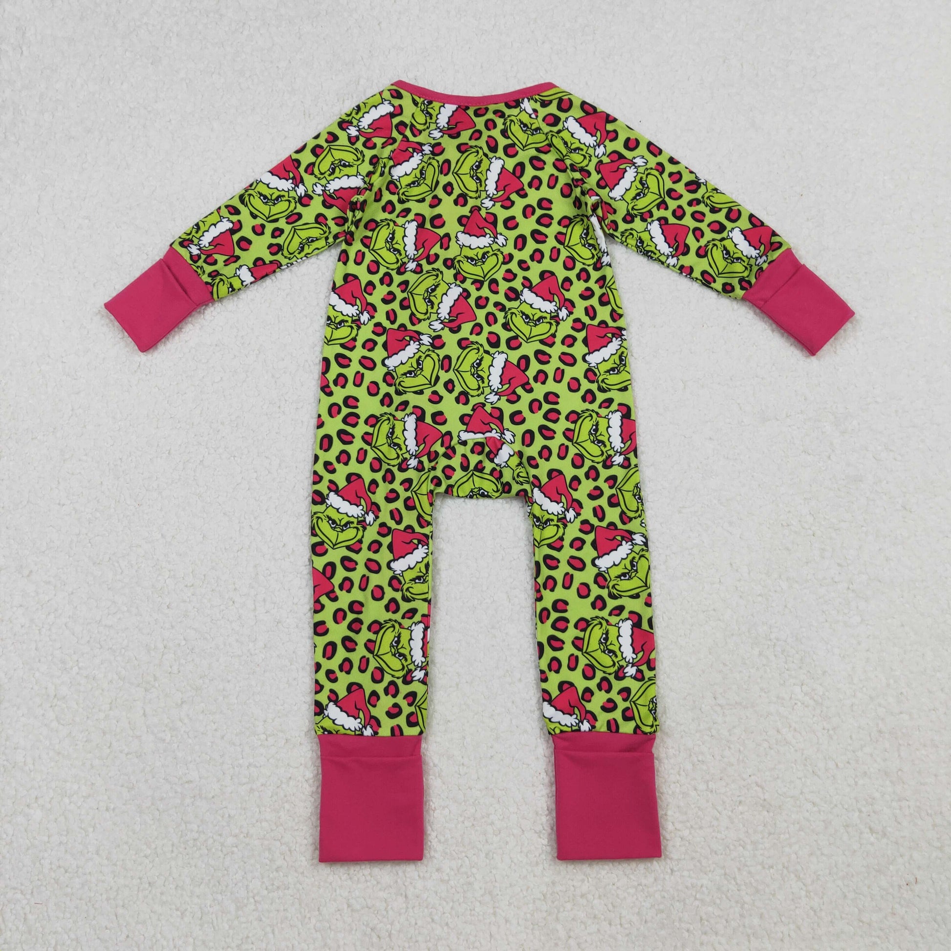 10.15 RTS NO MOQ (In stock)LR2520 Baby Girls Winter Rompers Baby Girls Leopard Hats Grin Christmas Ruffle Zipper Footie Rompers