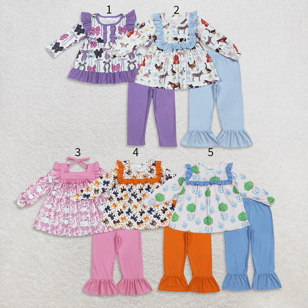 10.16 RTS Sibling Baby Girls Long Sleeve Tops Tunic Ruffle Pants Clothes Sets