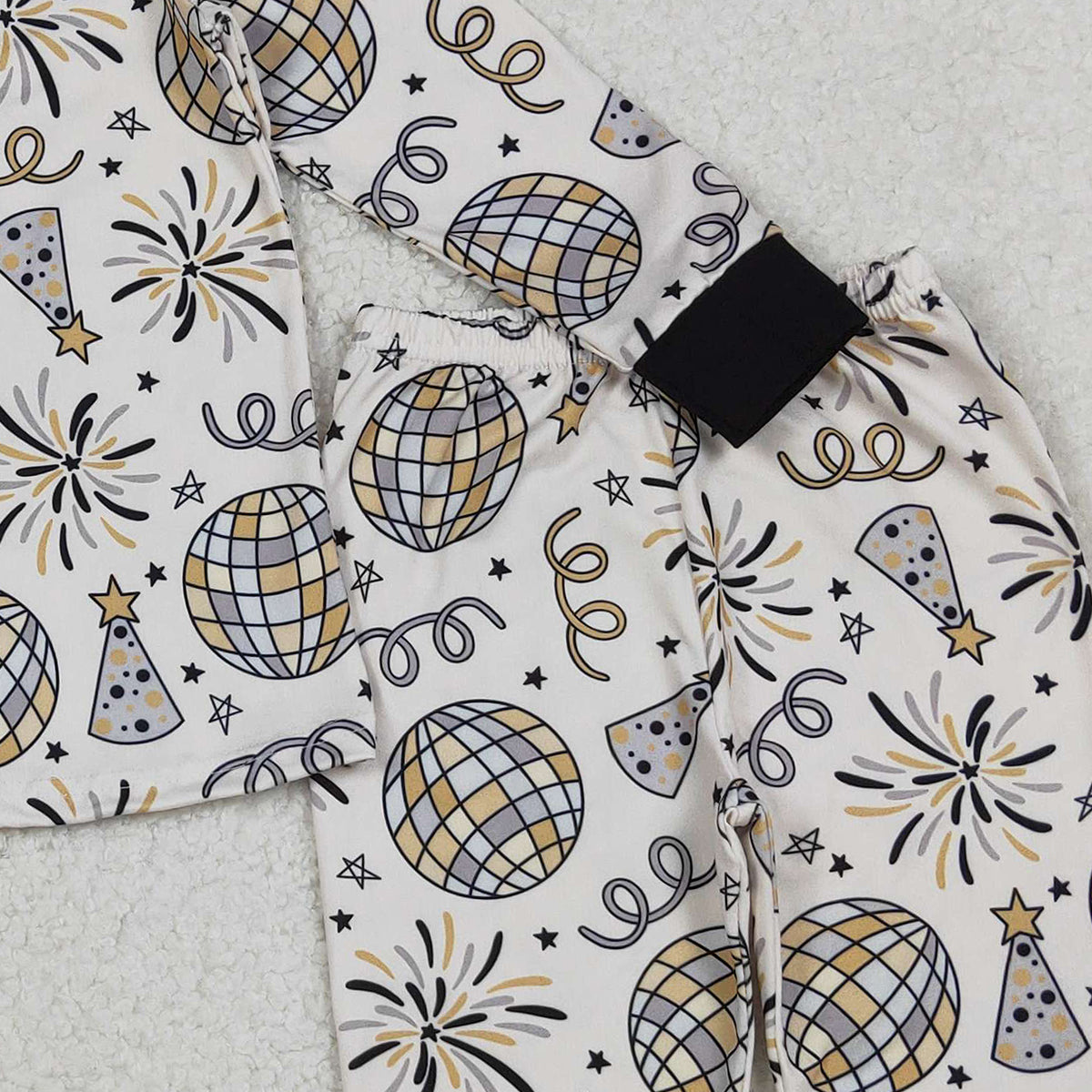 10.17 RTS NO MOQ (In stock)BLP1166 Baby Boys Winter Outfits Baby Boys Happy New Year Button Top Pant Pajamas Sets