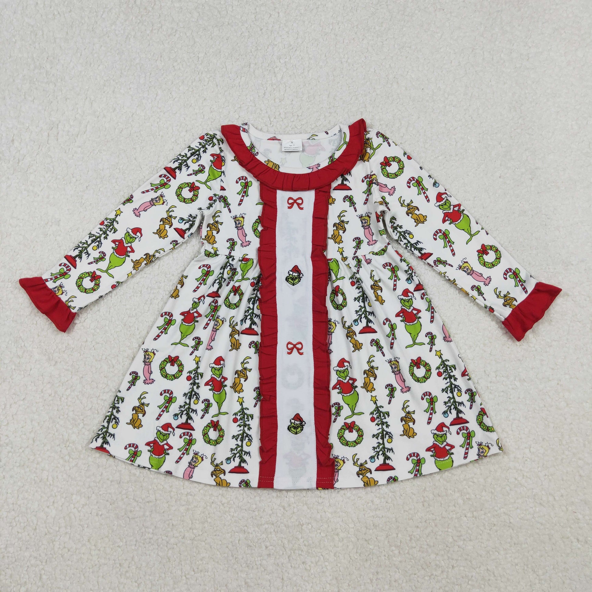 10.17 RTS NO MOQ (In stock)GLD1289 Baby Girls Winter Dress Embroidery Bows Grin Baby Girls Christmas Collar Knee Length Dresses