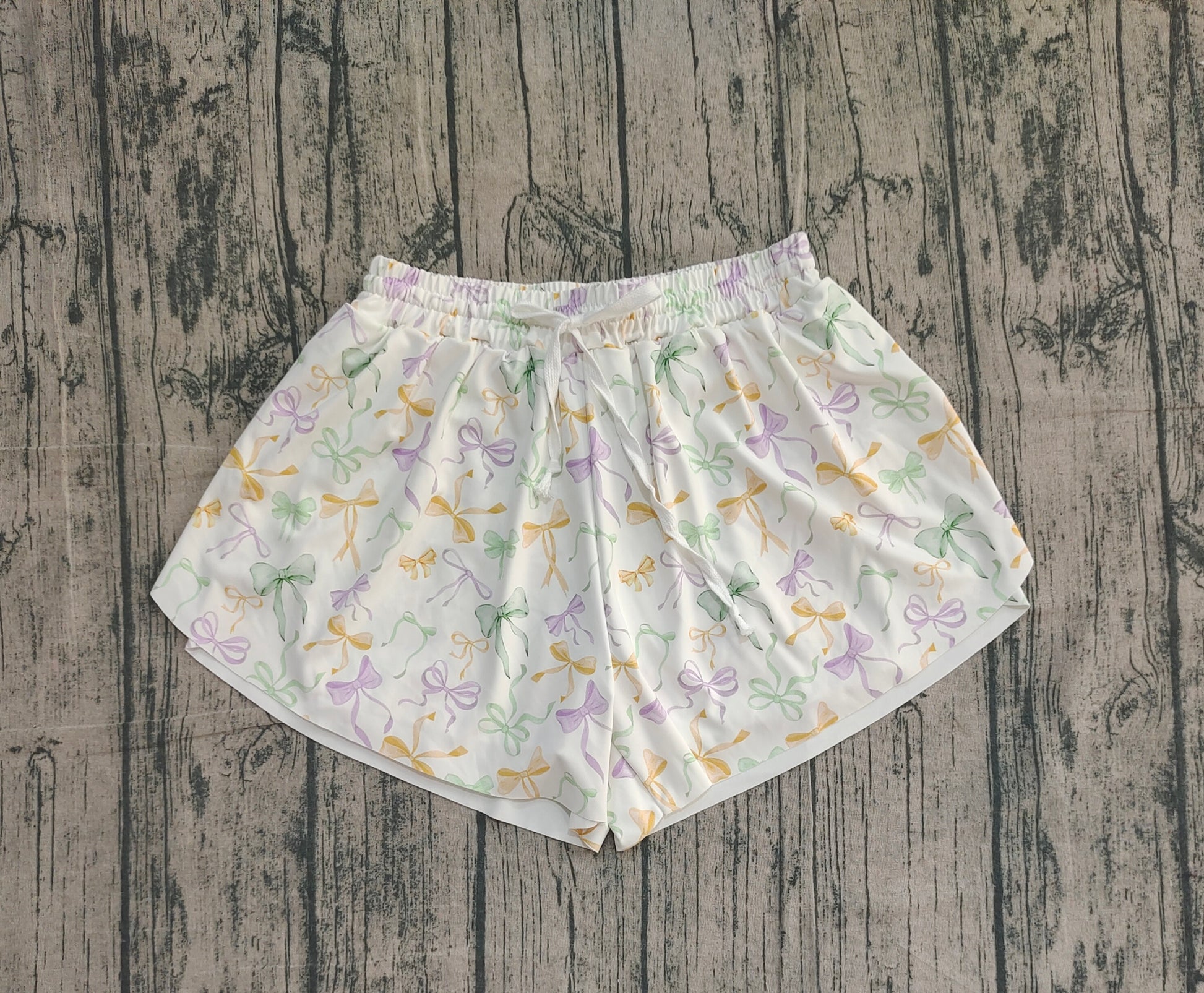 10.17 SS0679 Sample No Moq Yoga fabric Adult Women Mardigras Bows Ruffle Yoga Shorts Bottoms