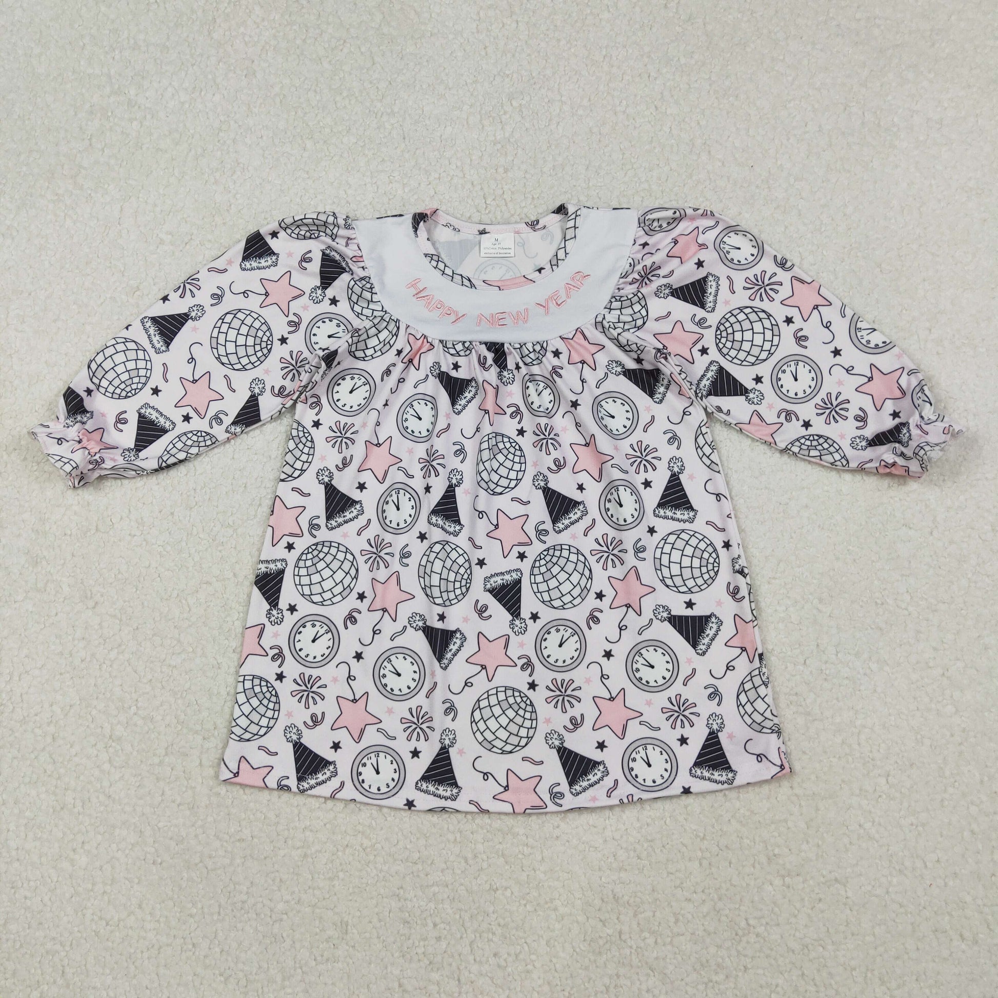 10.18 RTS NO MOQ (In stock)GLD1231 Baby Girls Winter Dress Embroidery Happy New Year Baby Girls Stars Firework Knee Length Dresses