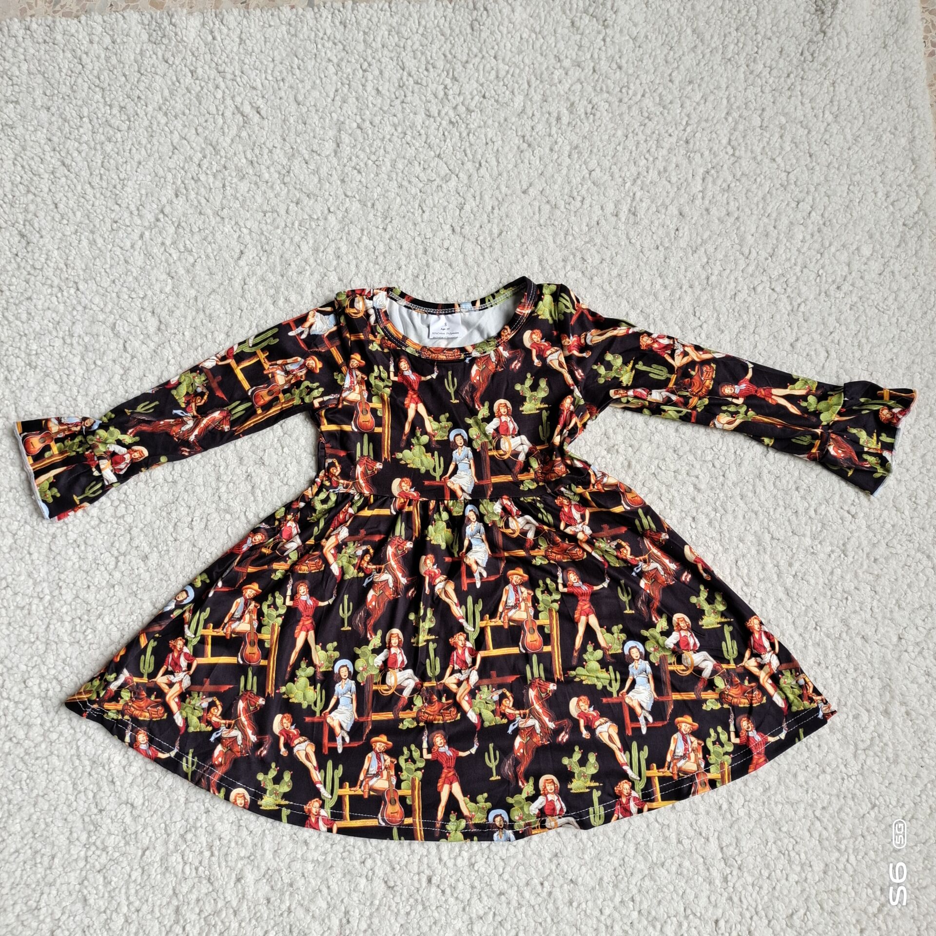 10.2 RTS NO MOQ(In stock)G4-12-4 Baby Girls Winter Dress Girls Cactus Horse Black Long Sleeve Dress