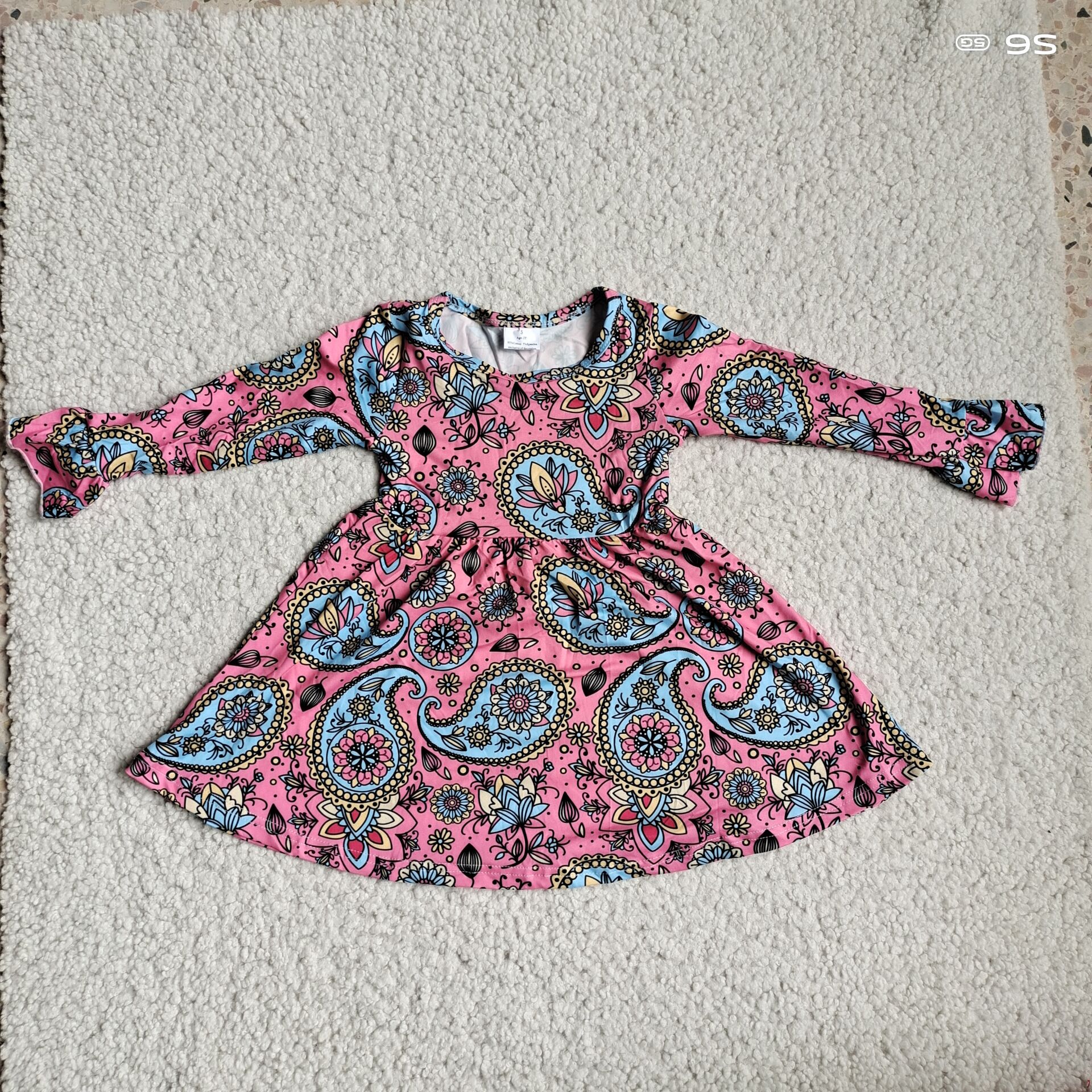 10.2 RTS NO MOQ(In stock)G4-12-6,. Baby Girls Winter Dress Blue and yellow fan-shaped petals rose pink long-sleeved dress