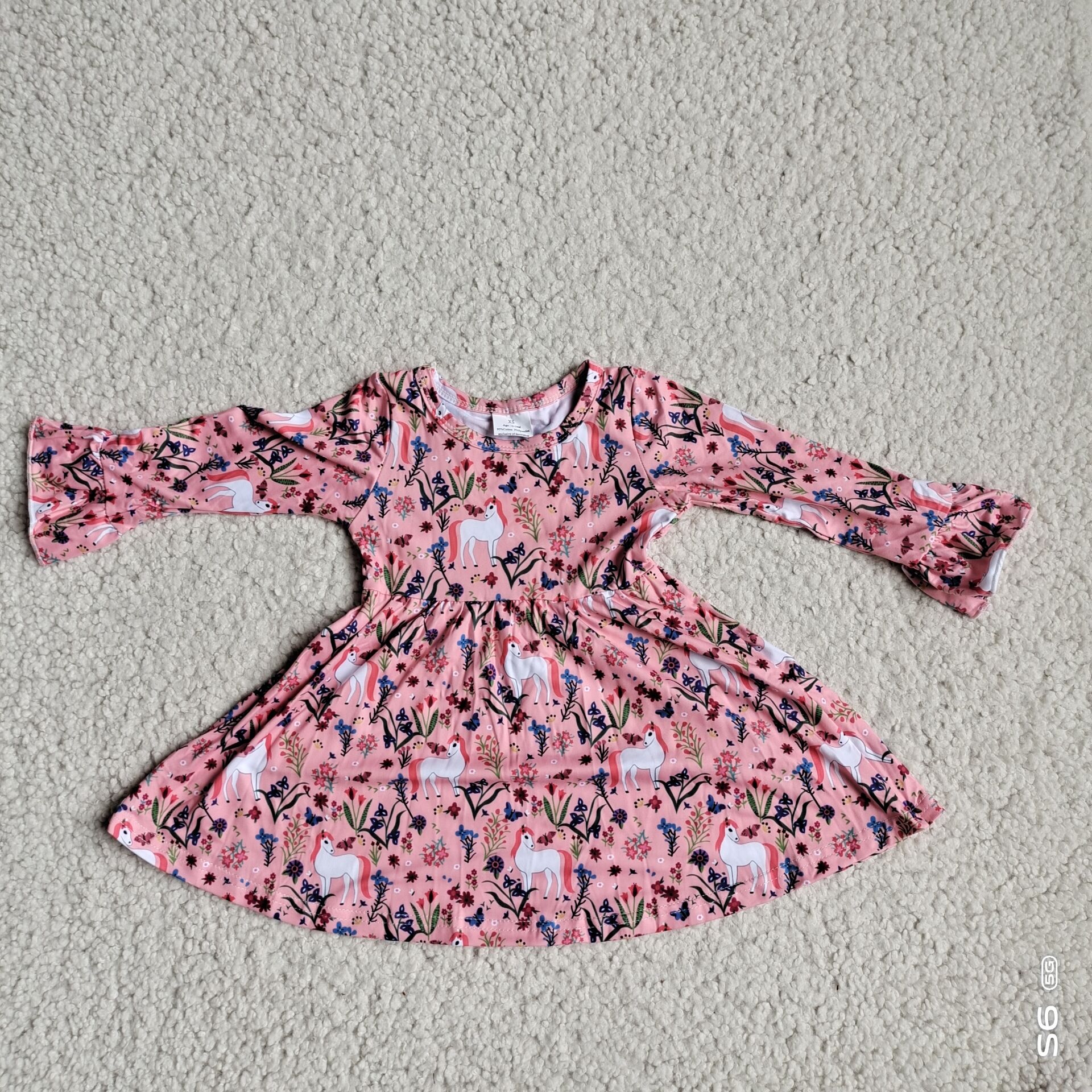 10.2 RTS NO MOQ(In stock)G4-12-9;. Baby Girls Winter Dress Pink long-sleeved dress with blue and red flowers