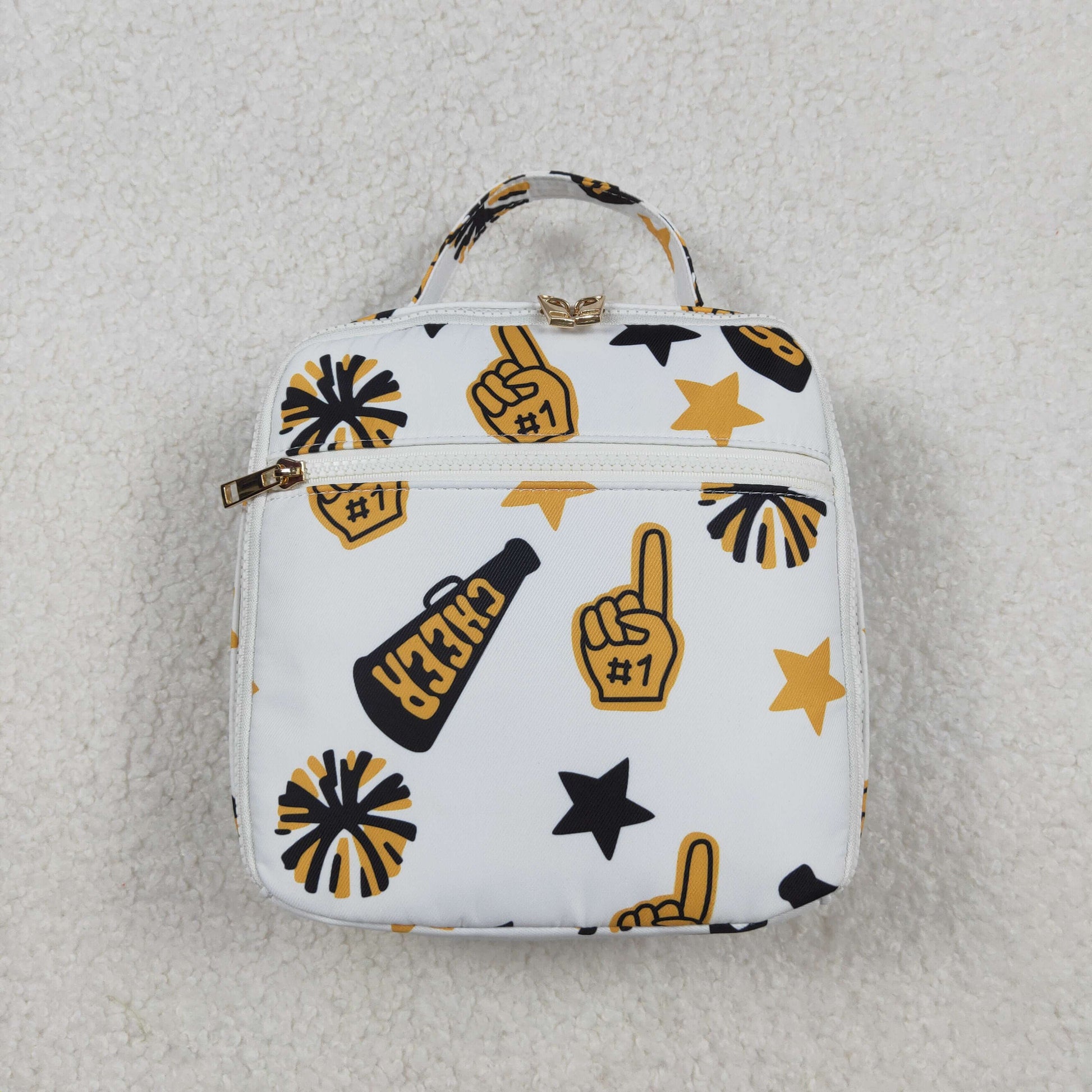 10.21 RTS NO MOQ (In stock)BA0362 Baby Bags Baby Kids Team Black Gold Cheer Fireworks Zipper School Lunch Boxes