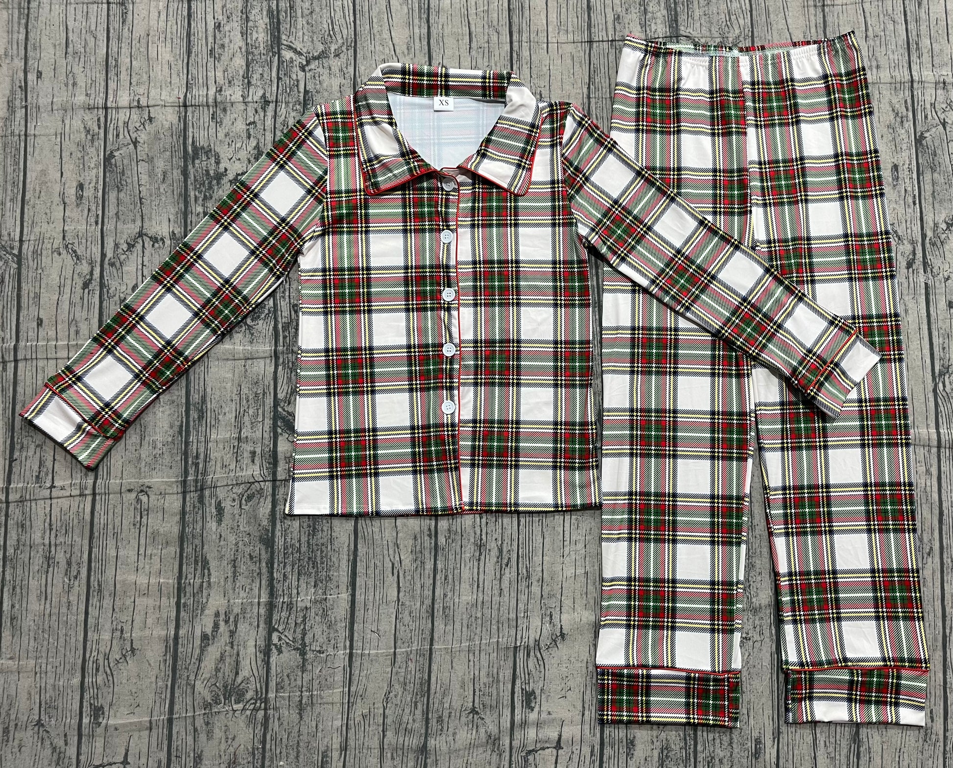 10.22 BLP1277 Sample No Moq Adult Men Green Red Checked Button Top Pant Christmas Pajamas Sets