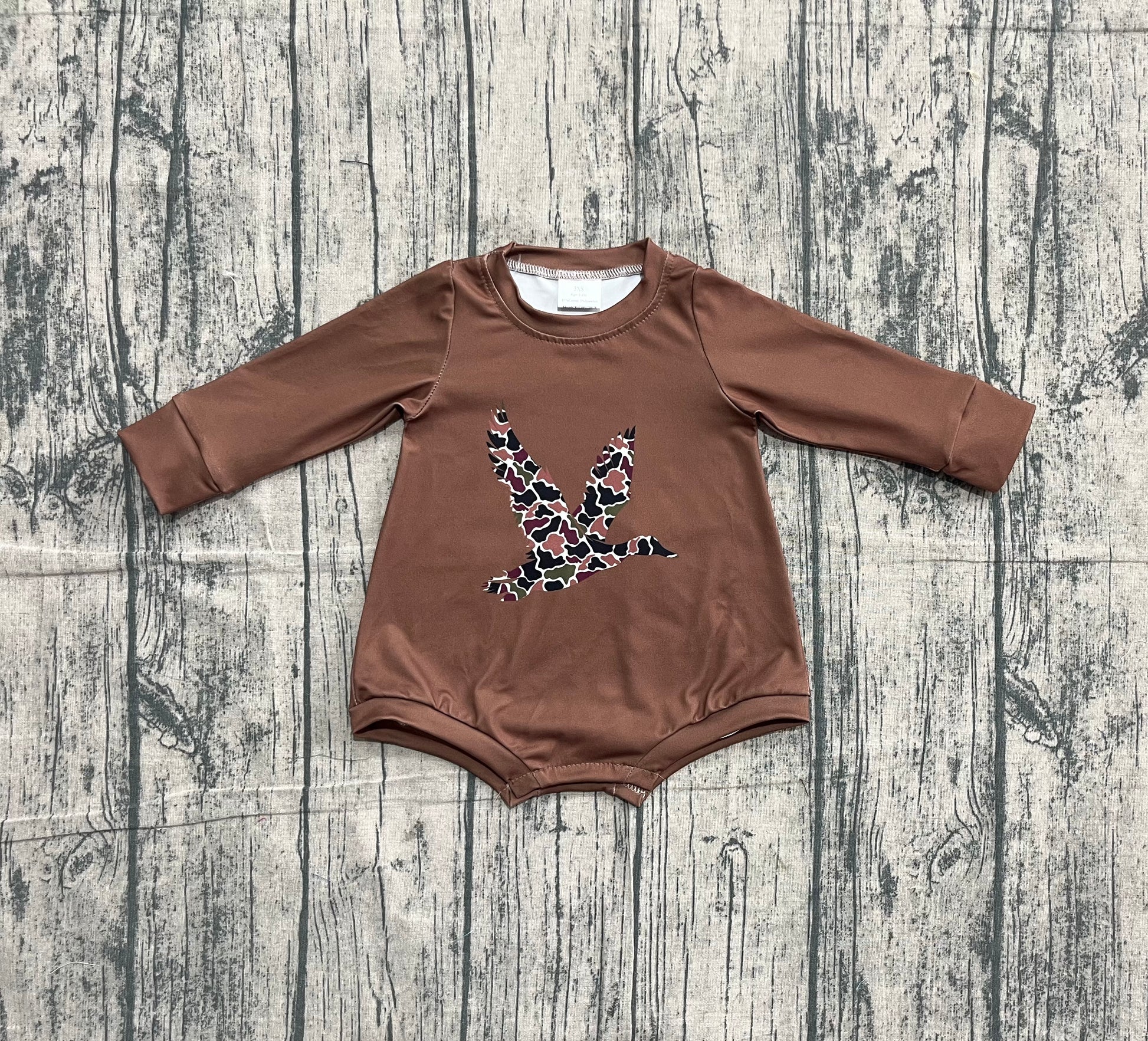 10.22 LR2777 Sample No Moq Baby Girls Brown Long Sleeve Camo Ducks Rompers