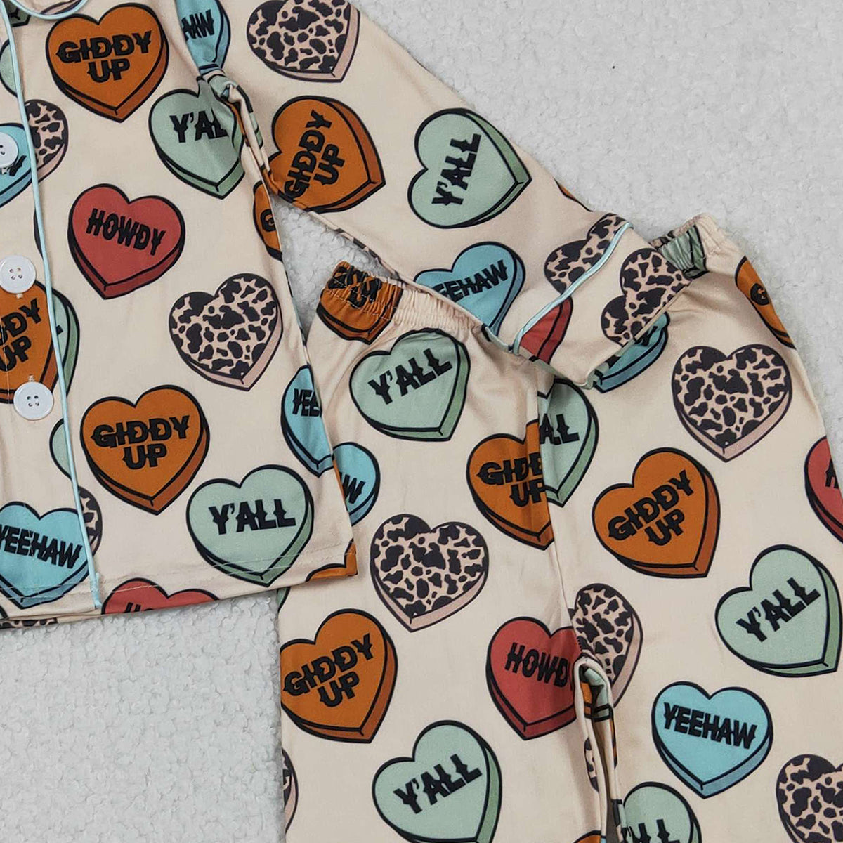 10.23 RTS NO MOQ (In stock)BLP1284 Baby Boys Winter Outfits Baby Boys Long Sleeves Hearts Button Top Pants Valentine Pajamas Sets
