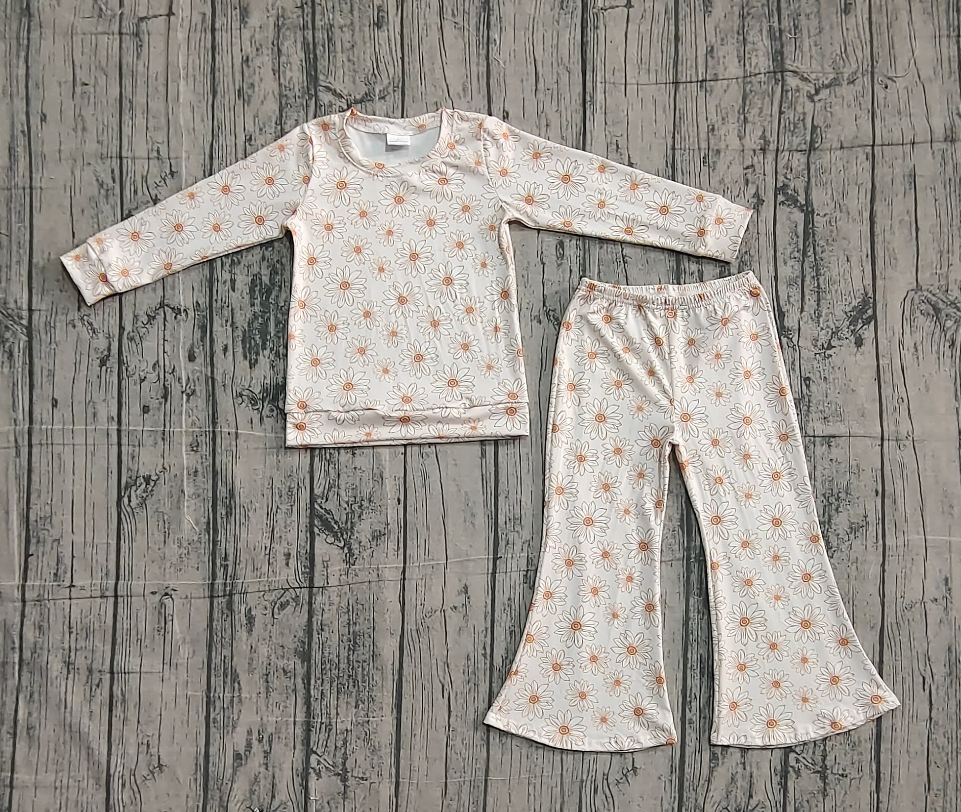 10.27 BLP1213 Sample No Moq Baby Girls Pink Flowers Top Bell Bottom Pants Clothes Sets