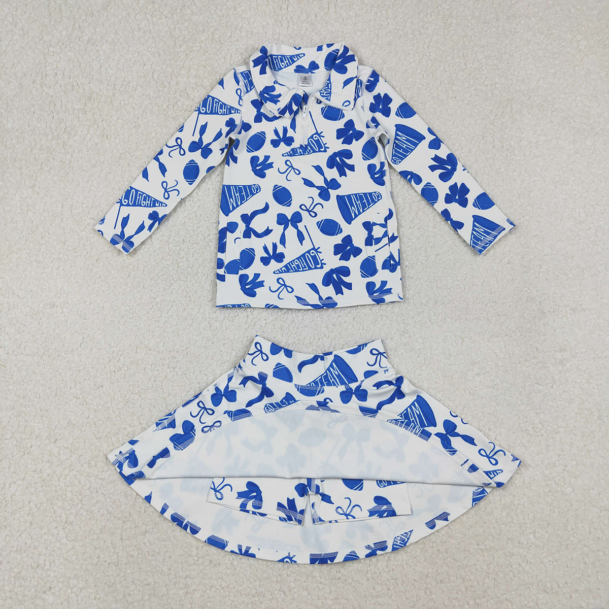 10.27 RTS NO MOQ (In stock)GT1195 Baby Girls Long Sleeve Tops Baby Girls Blue Bows Footballs Go Team Yoga Active Zipper Pullovers Top